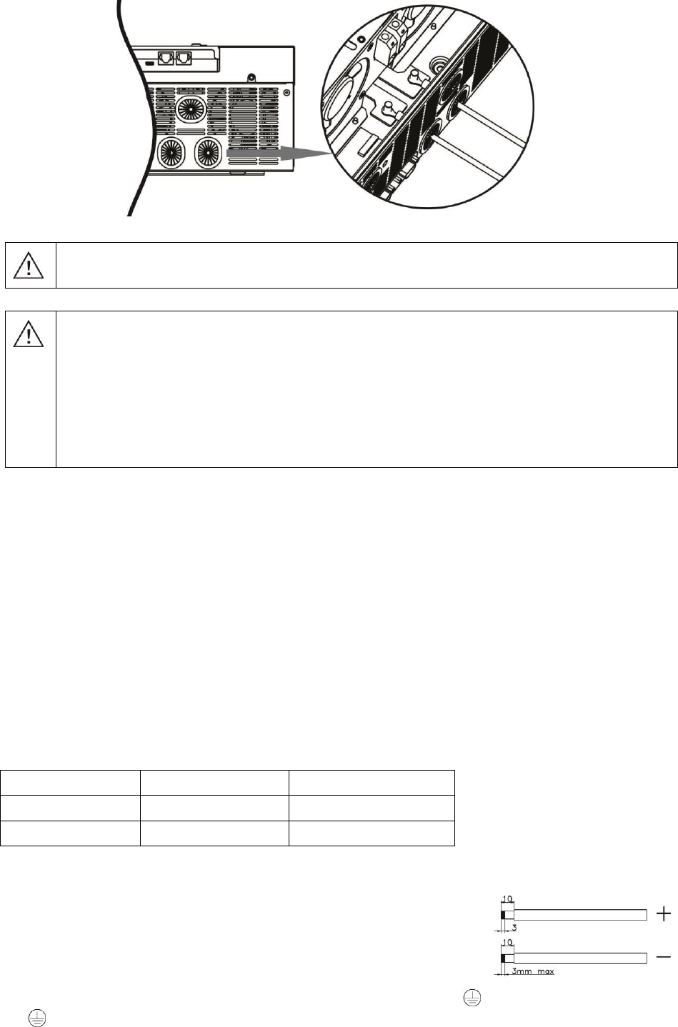 7. For optimum operation of this inverter/charger, please follow required spec to select appropriate cable
