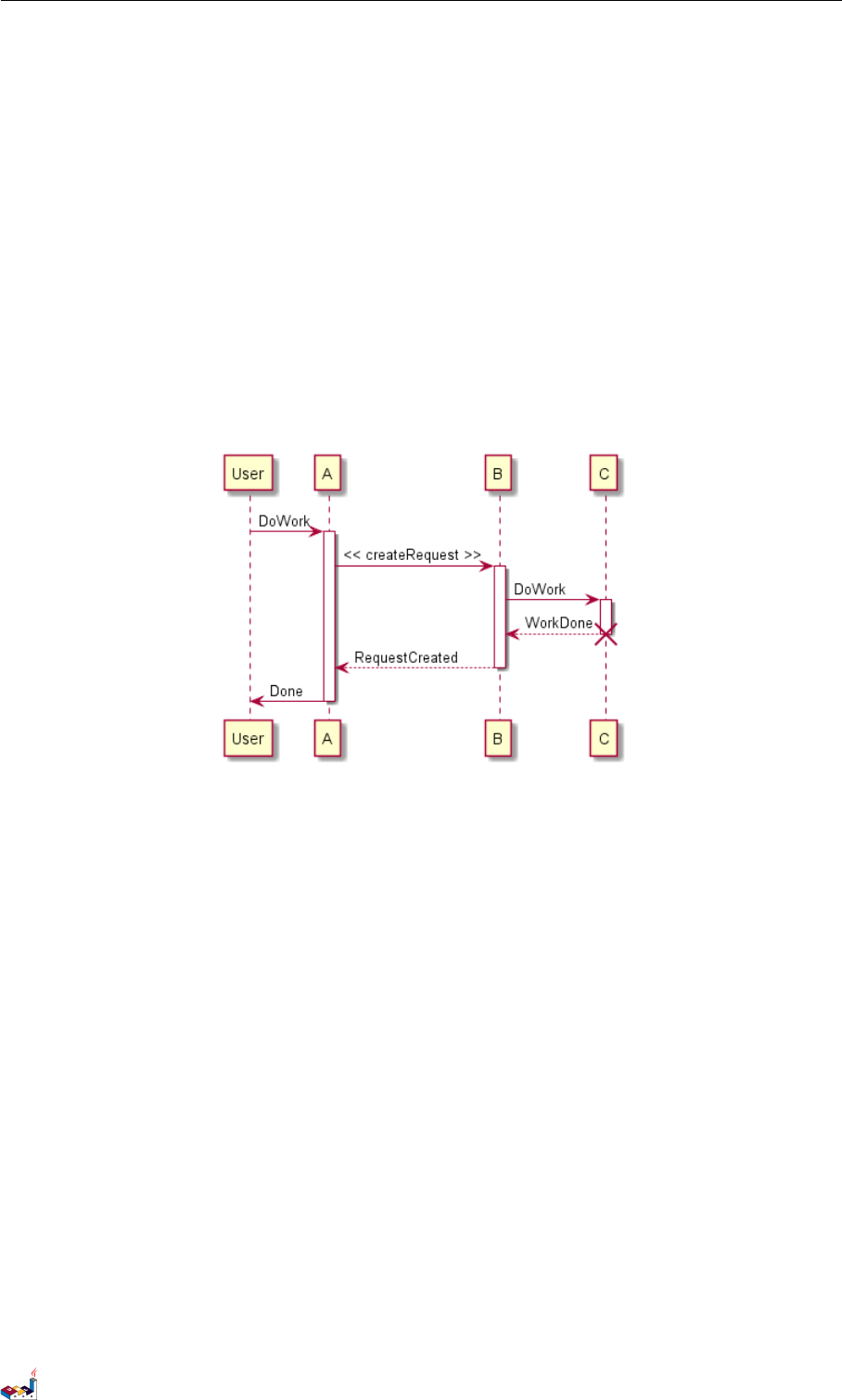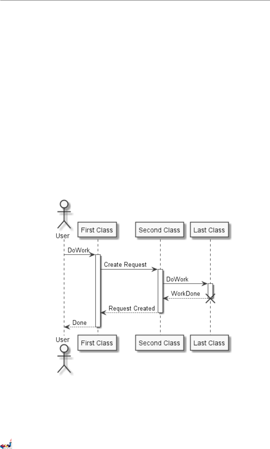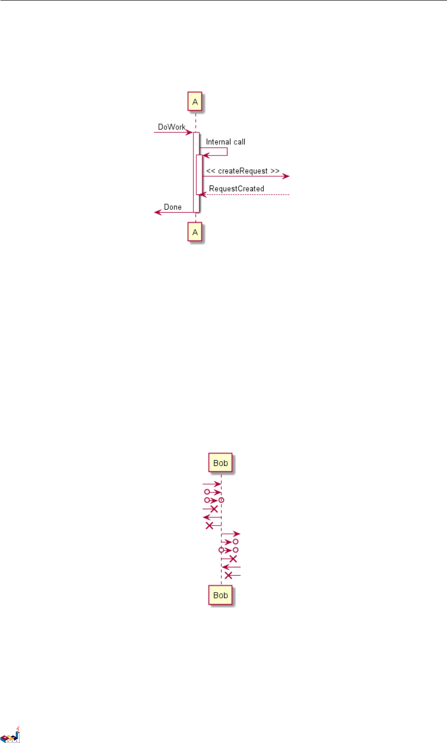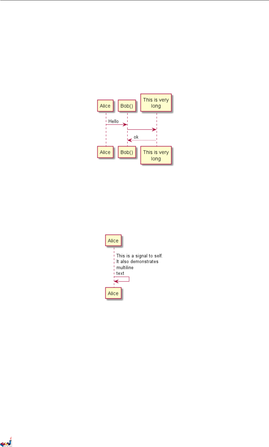 The sequence ->is used to draw a message between two participants. Participants do not have to be