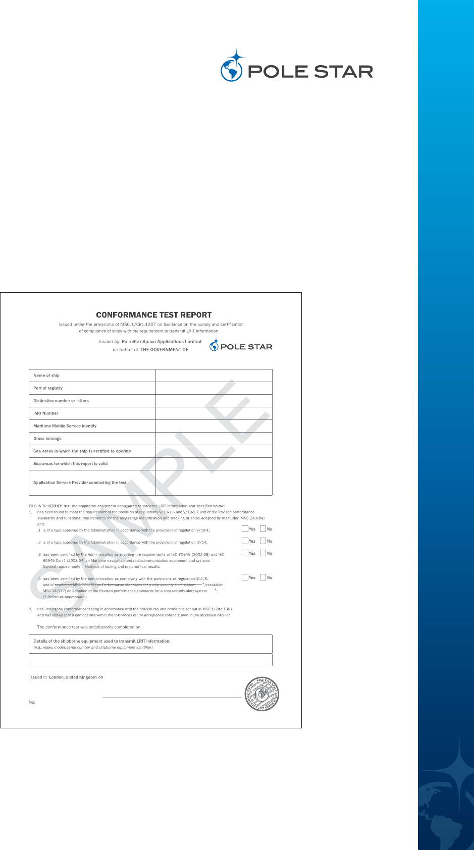 Provider (ASP) and LRIT Data Centres (DCs). LRIT Conformance Testing services are offered