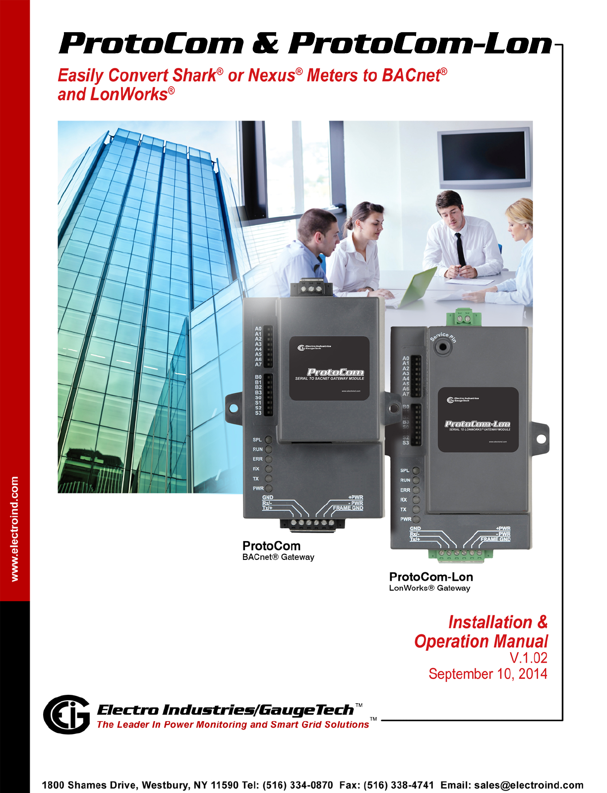 ProtoCom_ProtoCom Lon User Manual V.1.02 Proto Com And BACnet Works Protocol Gateway For Shark Nexus Meters E204701