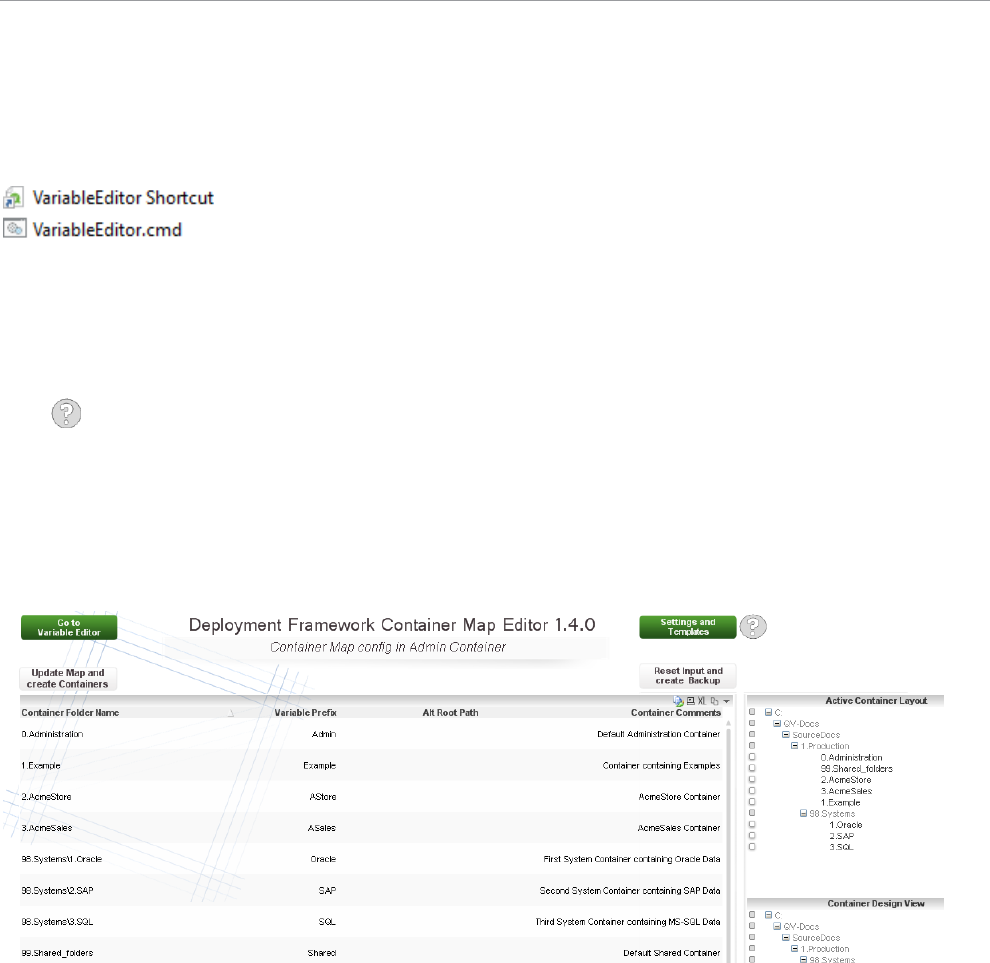 Is used to administrate and populate containers within the framework. Press Go to Container Map to change to