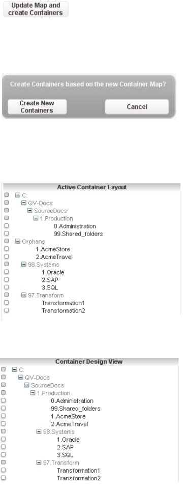 Create New Containers will create containers based on the current container Map. This button is only shown