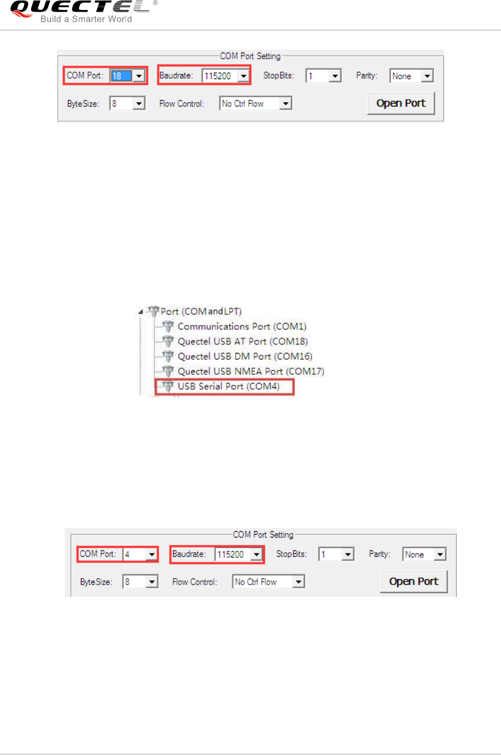 Figure 35: QCOM Window Configuration When Connecting USB Serial Port
