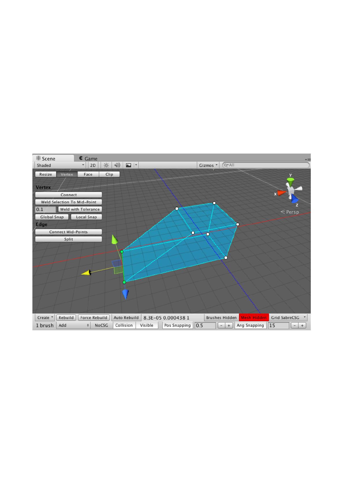 also shape the level geometry using the Clip and Vertex modes. Subtractive brushes are another