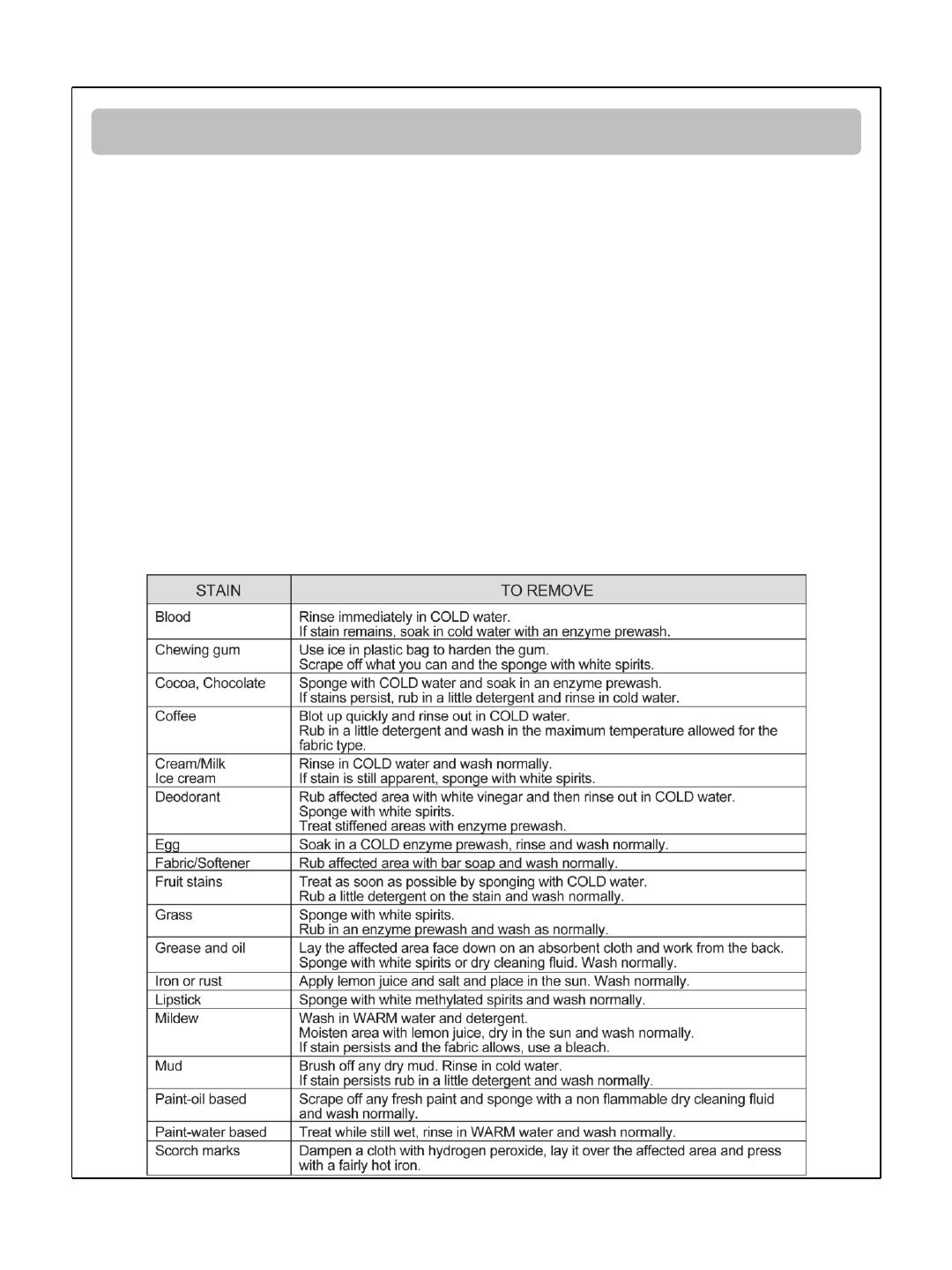 •It is recommended that you wash only extremely dirty laundry in prewashing