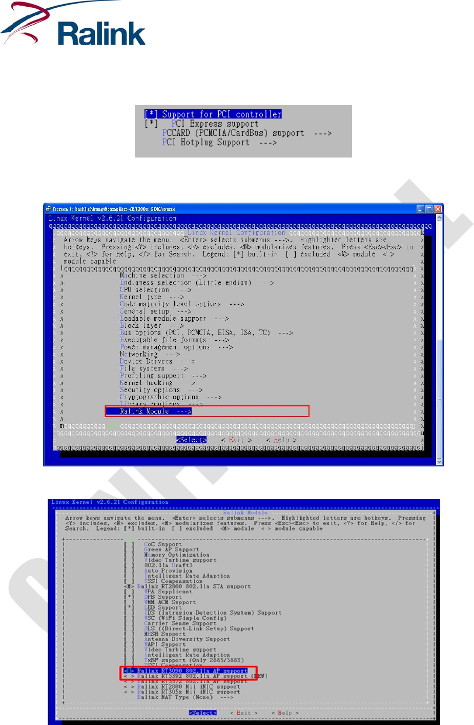 Leave“RalinkModule”optionandthenexit“LinuxKernelConfiguration”.