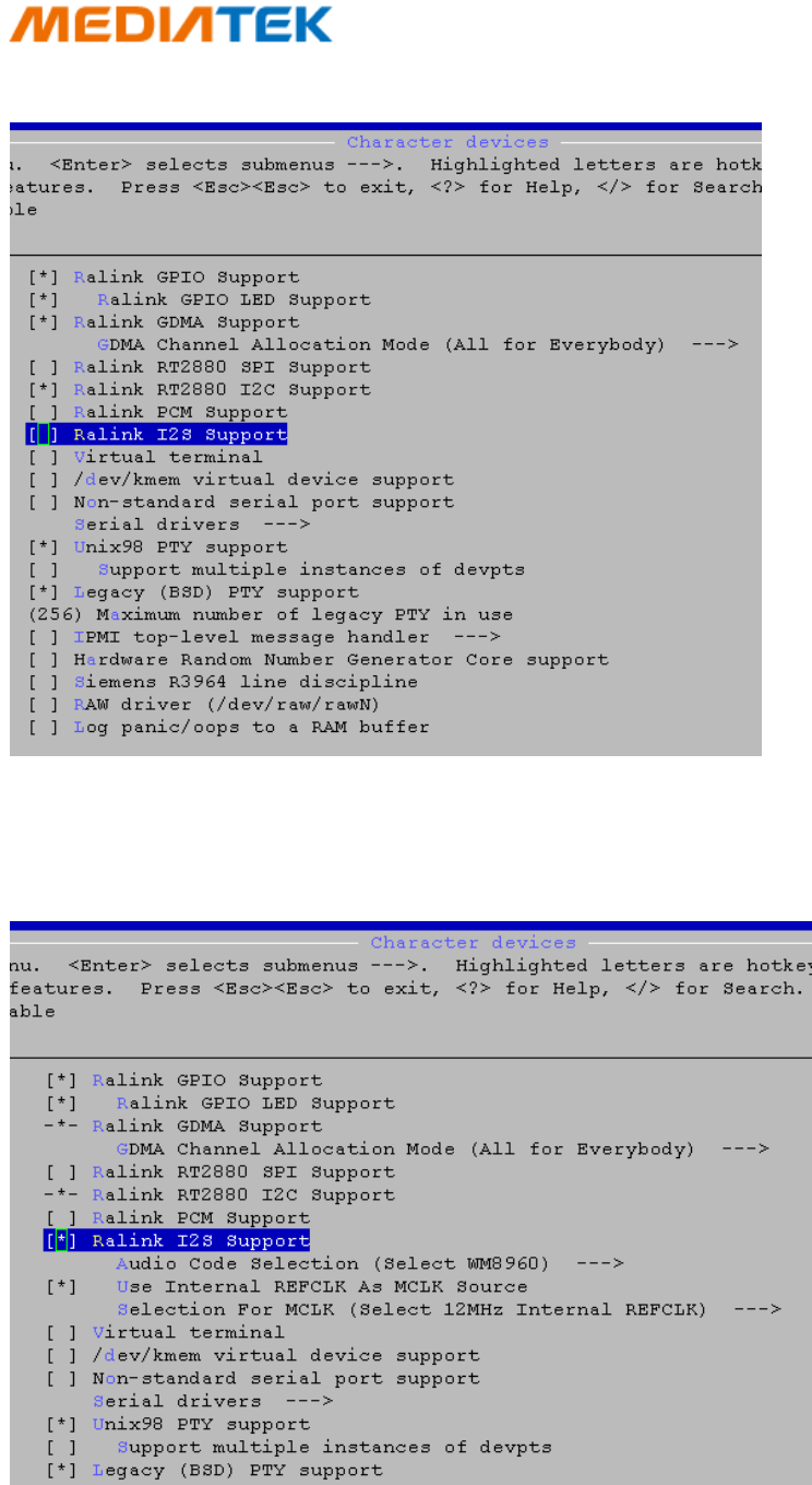 5. After choosing “Ralink I2S Support”, you can see “Audio Selection”. The default setting is “Select WM8960”.