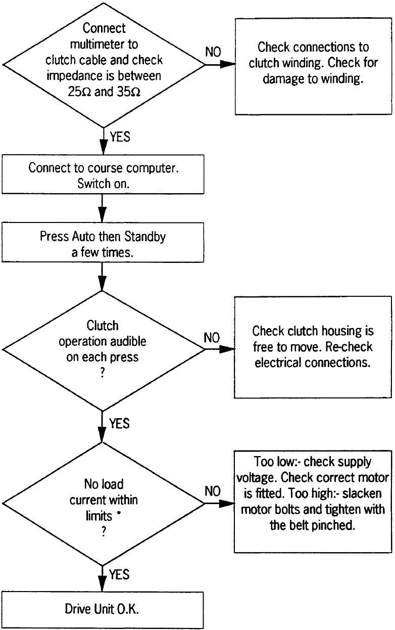 The clutch current at 10V should be between 0.7 and 10A. Connect the drive unit to