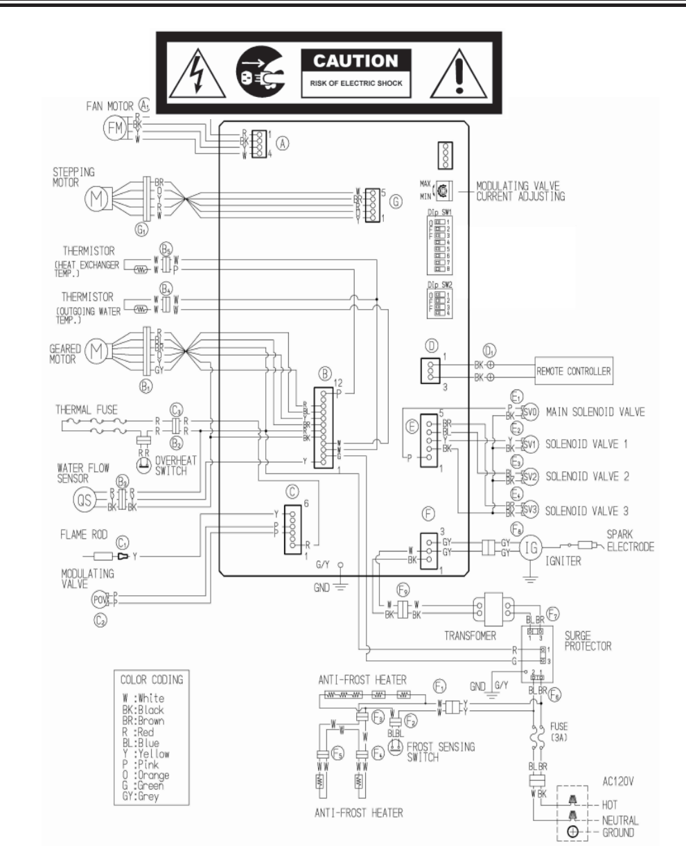 NOTE: The grey wire listed above turns to black at B connector on the PCB, the orange wire turns to red.