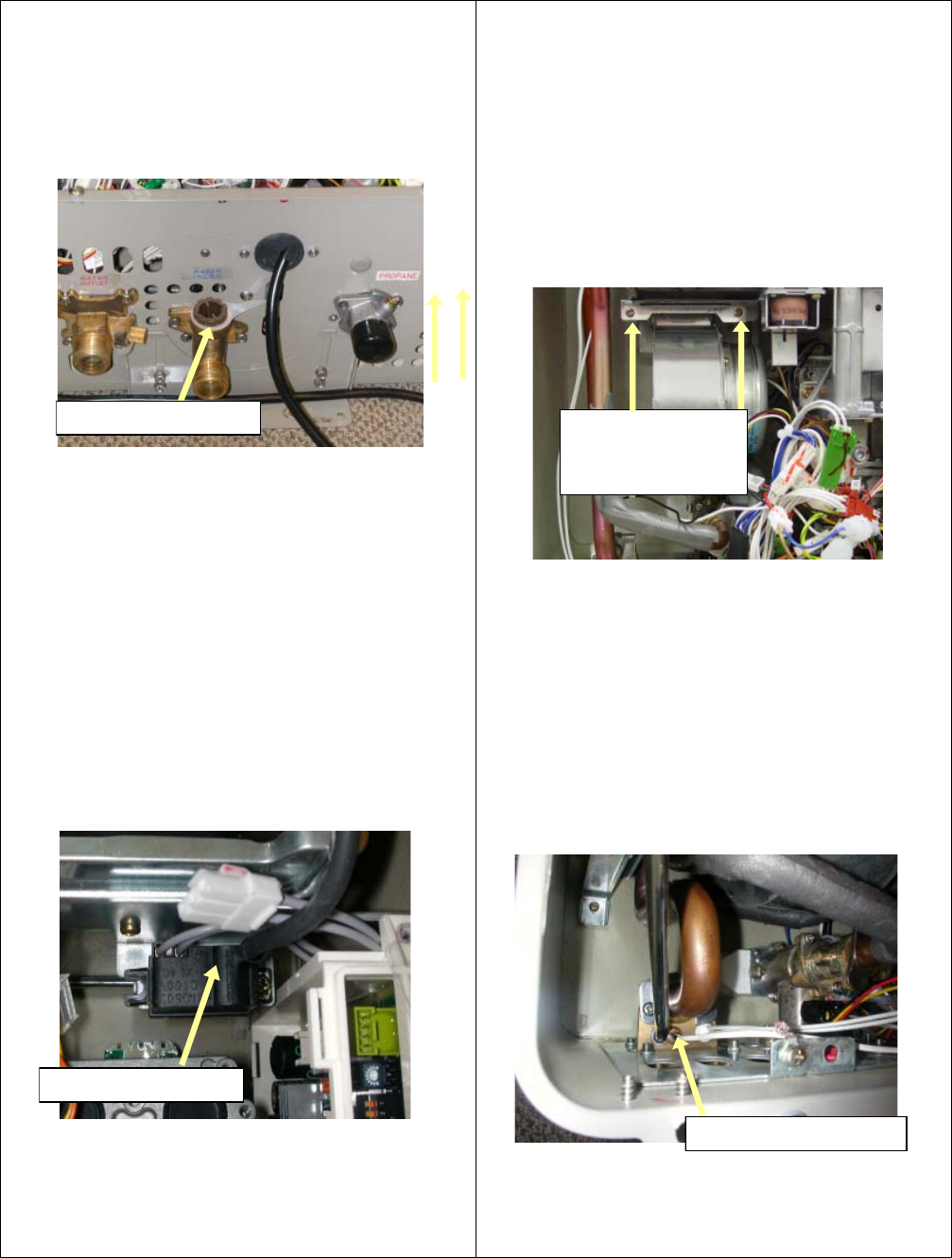 heater from freeze ups. There are two heaters located on the outlet hot water line next to the thermistor.