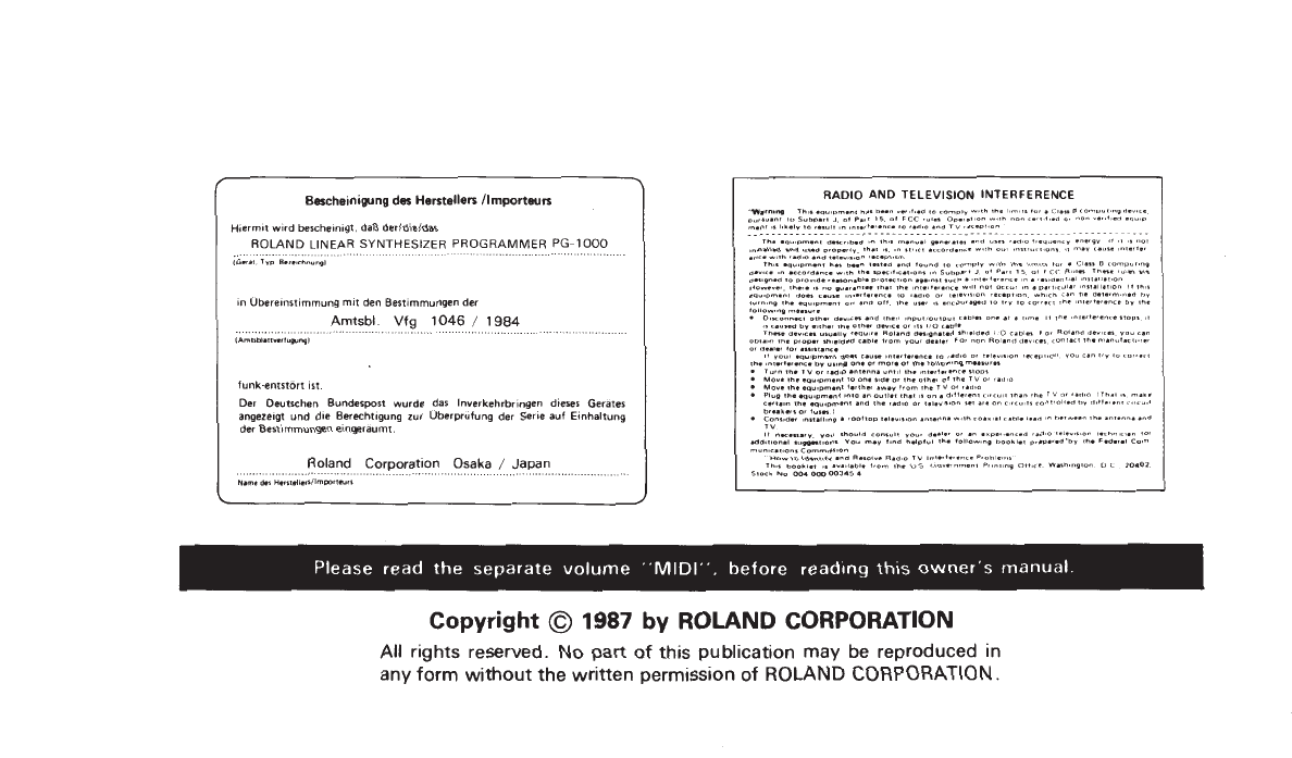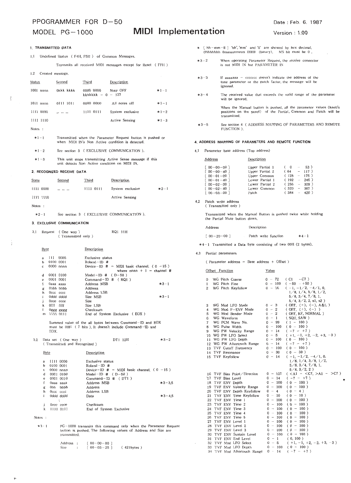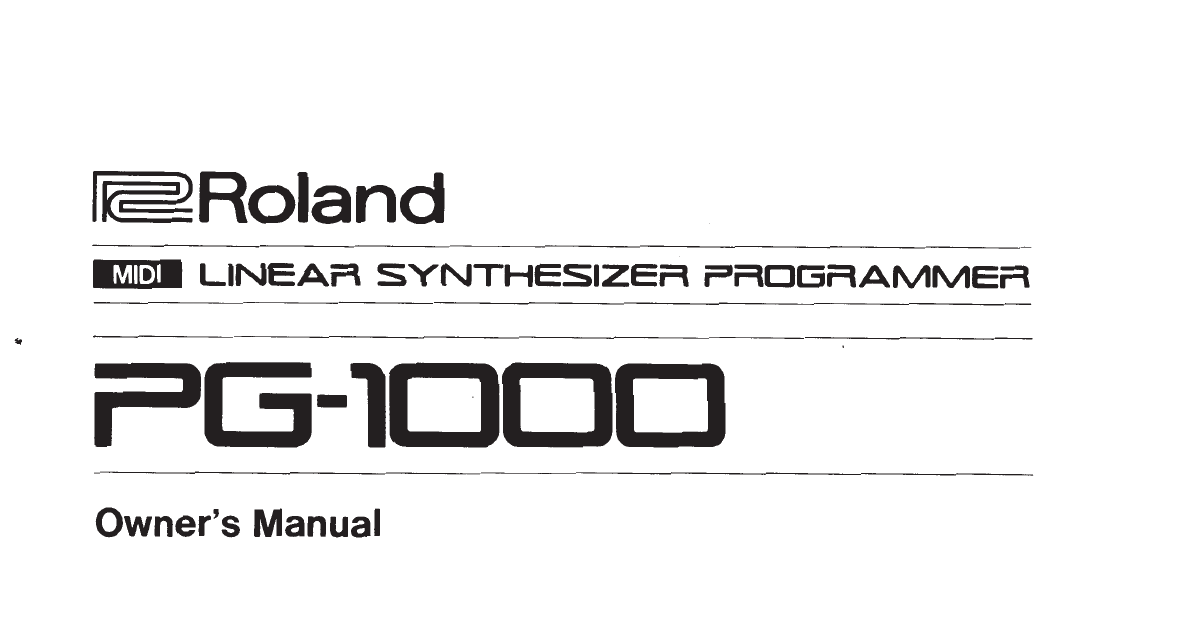 User Manual: Pdf PG-1000 Owners Manual Synthfool:Docs:Roland:PG Series