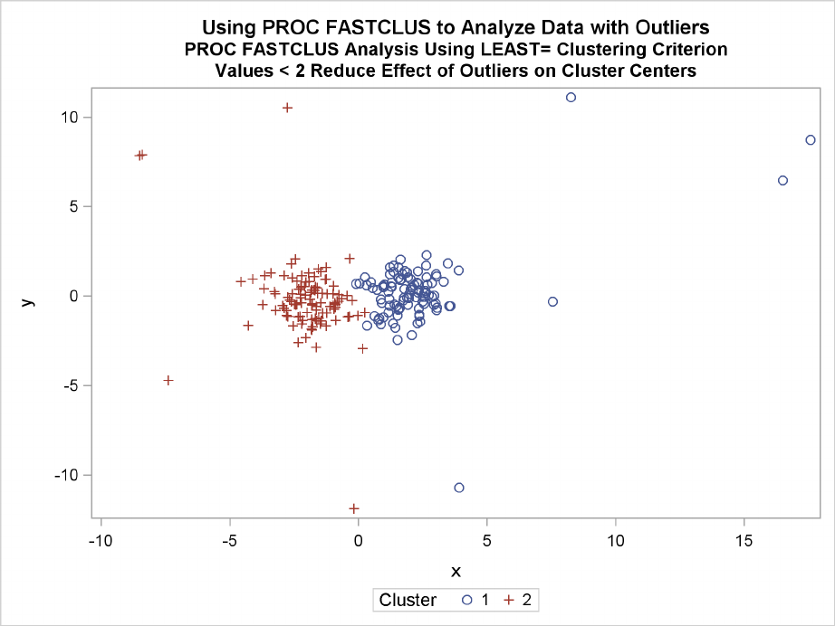 you specify LEAST=p. Values of pless than 2 reduce the effect of outliers on the cluster centers