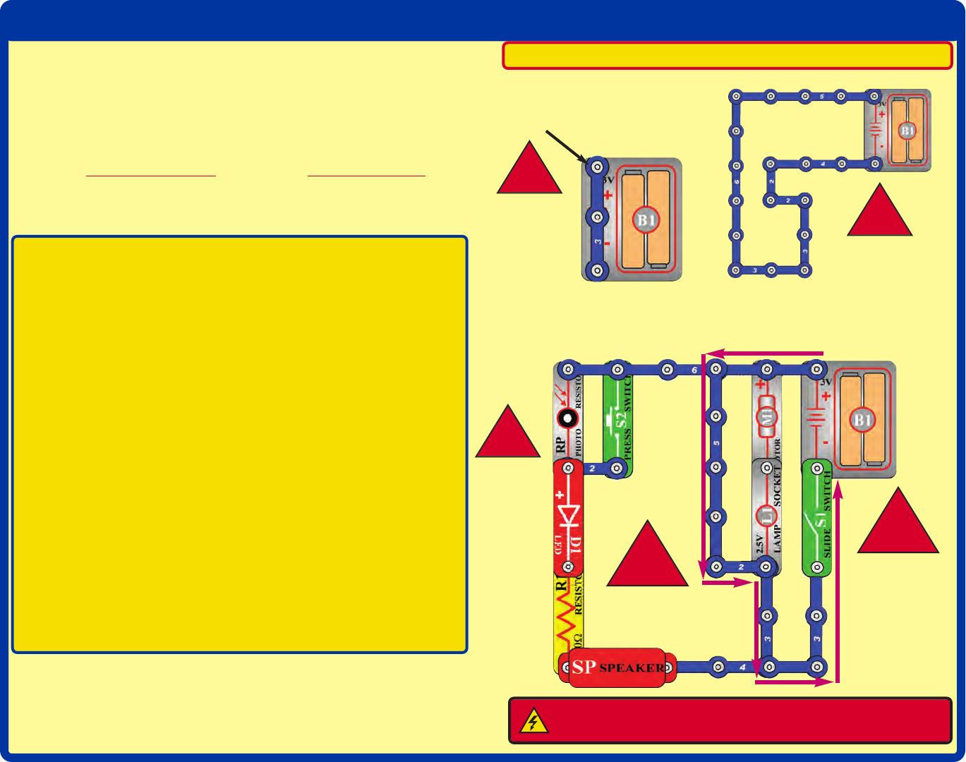 WARNING: SHOCK HAZARD - Never connect Snap Circuits®to the