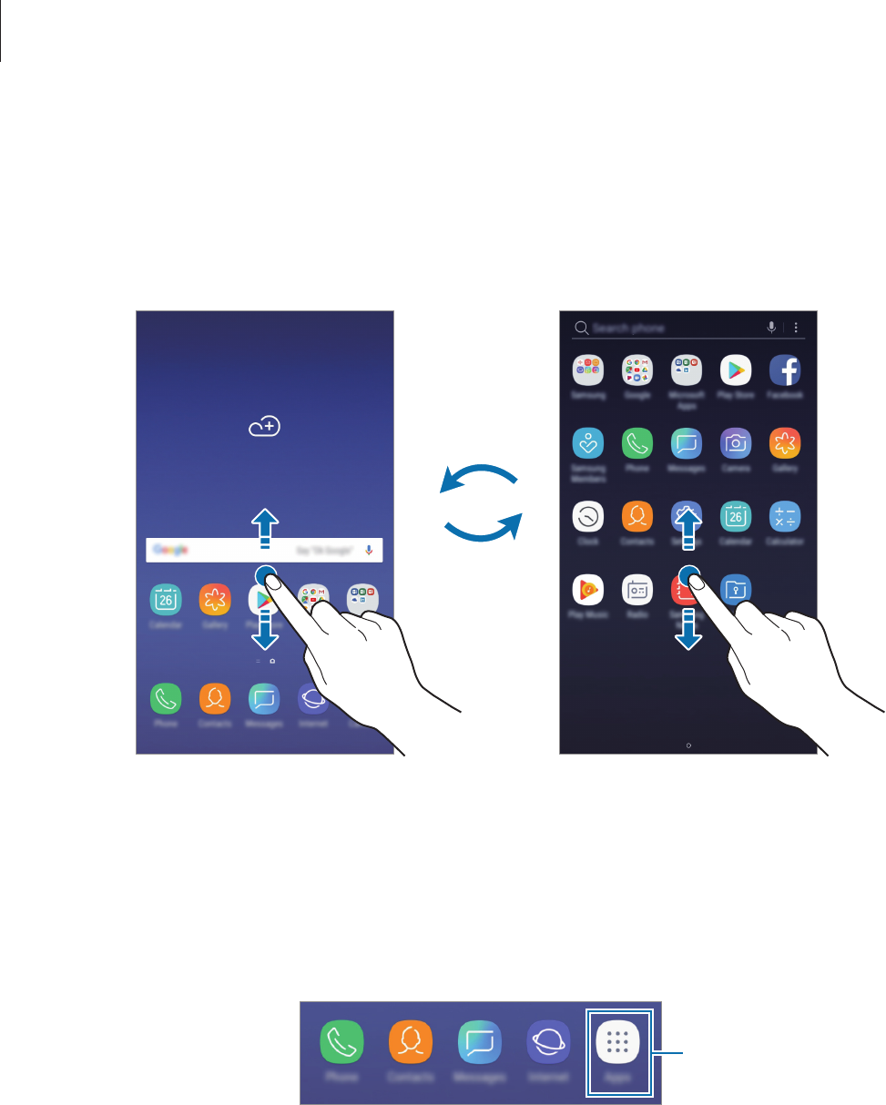 Without using the Apps button, you can open the Apps screen by swiping upwards or
