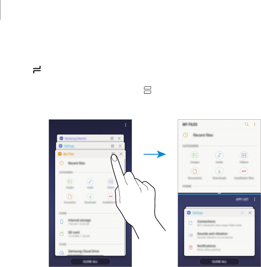 downwards on the Home screen. To return to the Home screen, swipe upwards or downwards