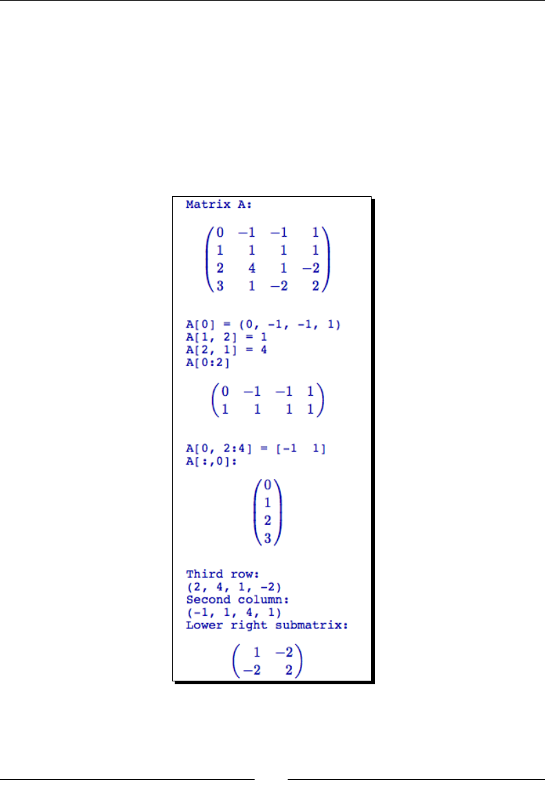 - Time for action – accessing elements and parts of a matrix