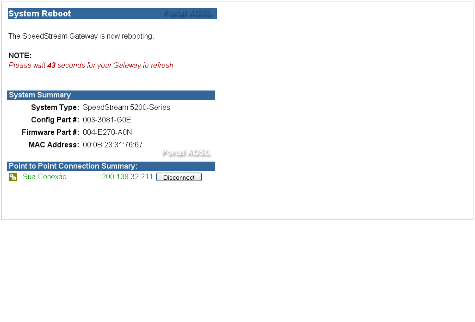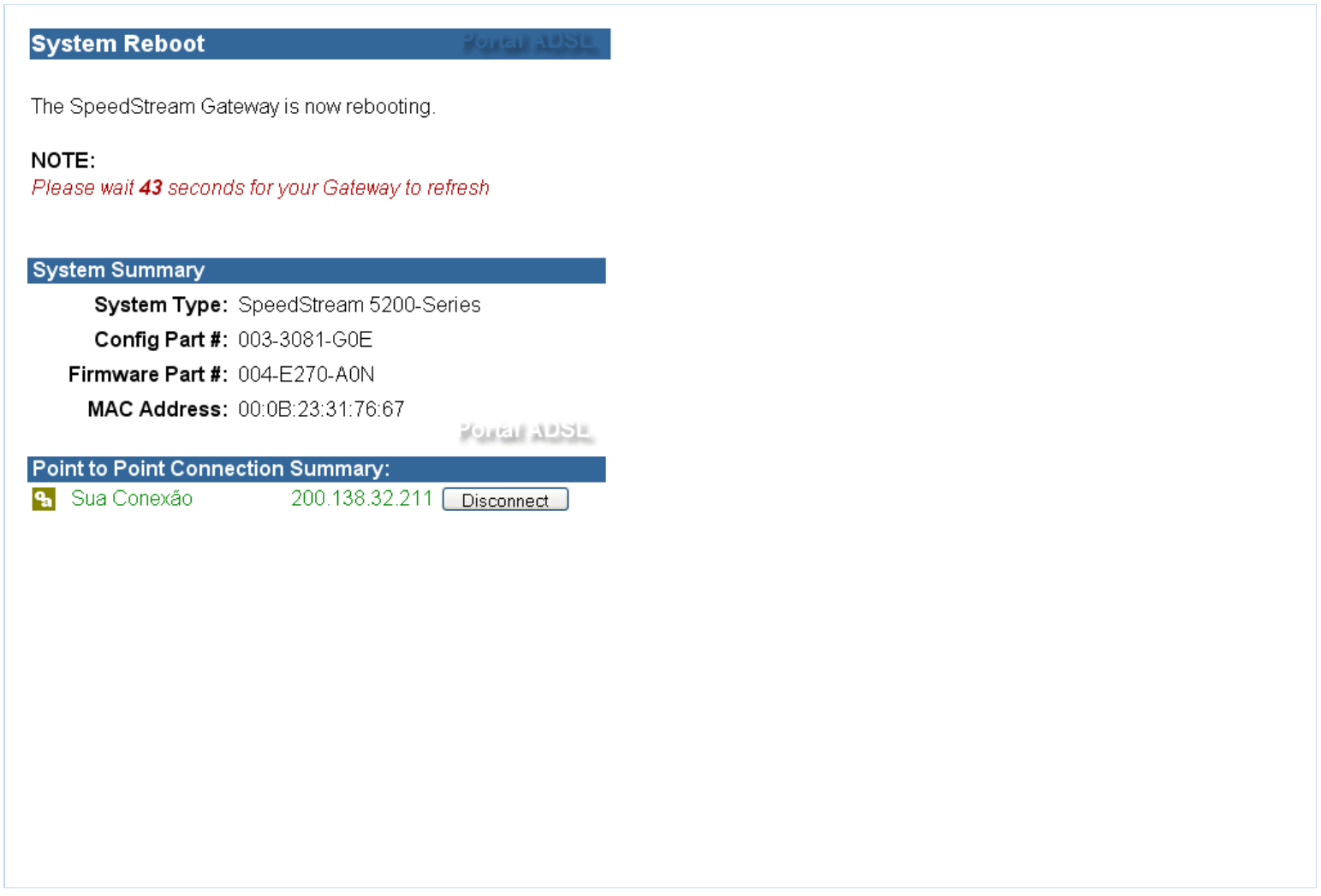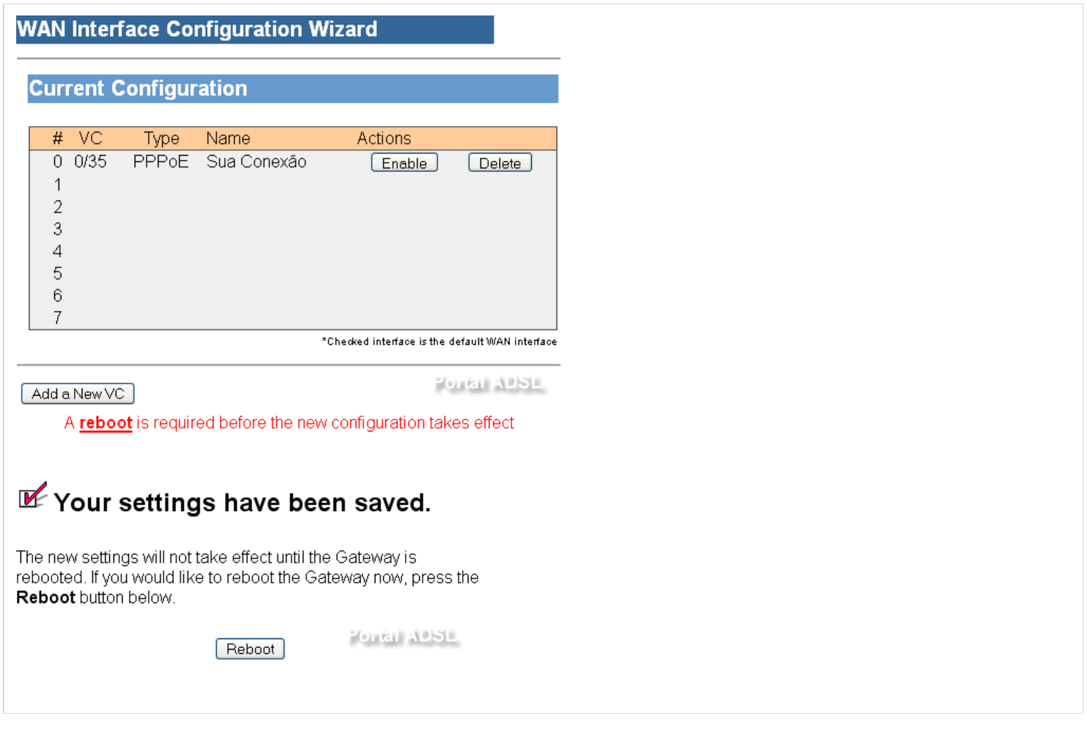 10 - Clique em "Enable" para habilitar sua conexão e em seguida clique em "reboot";