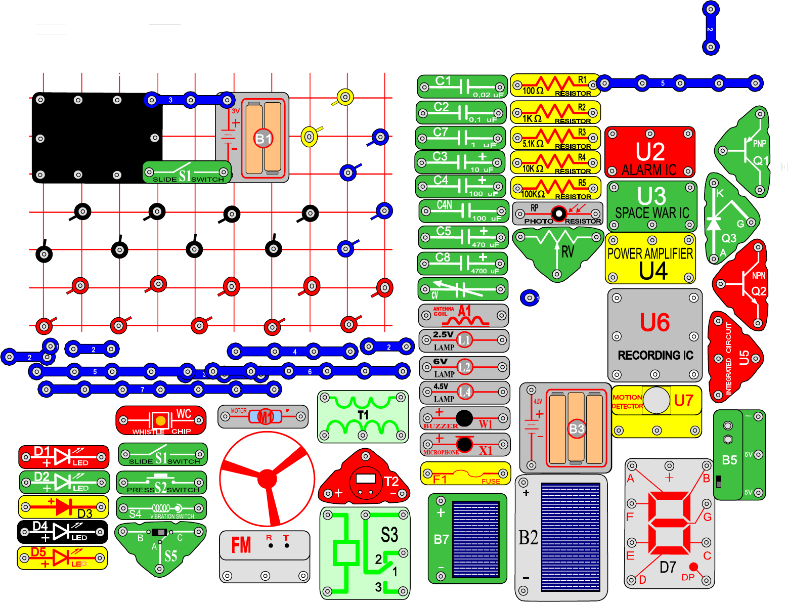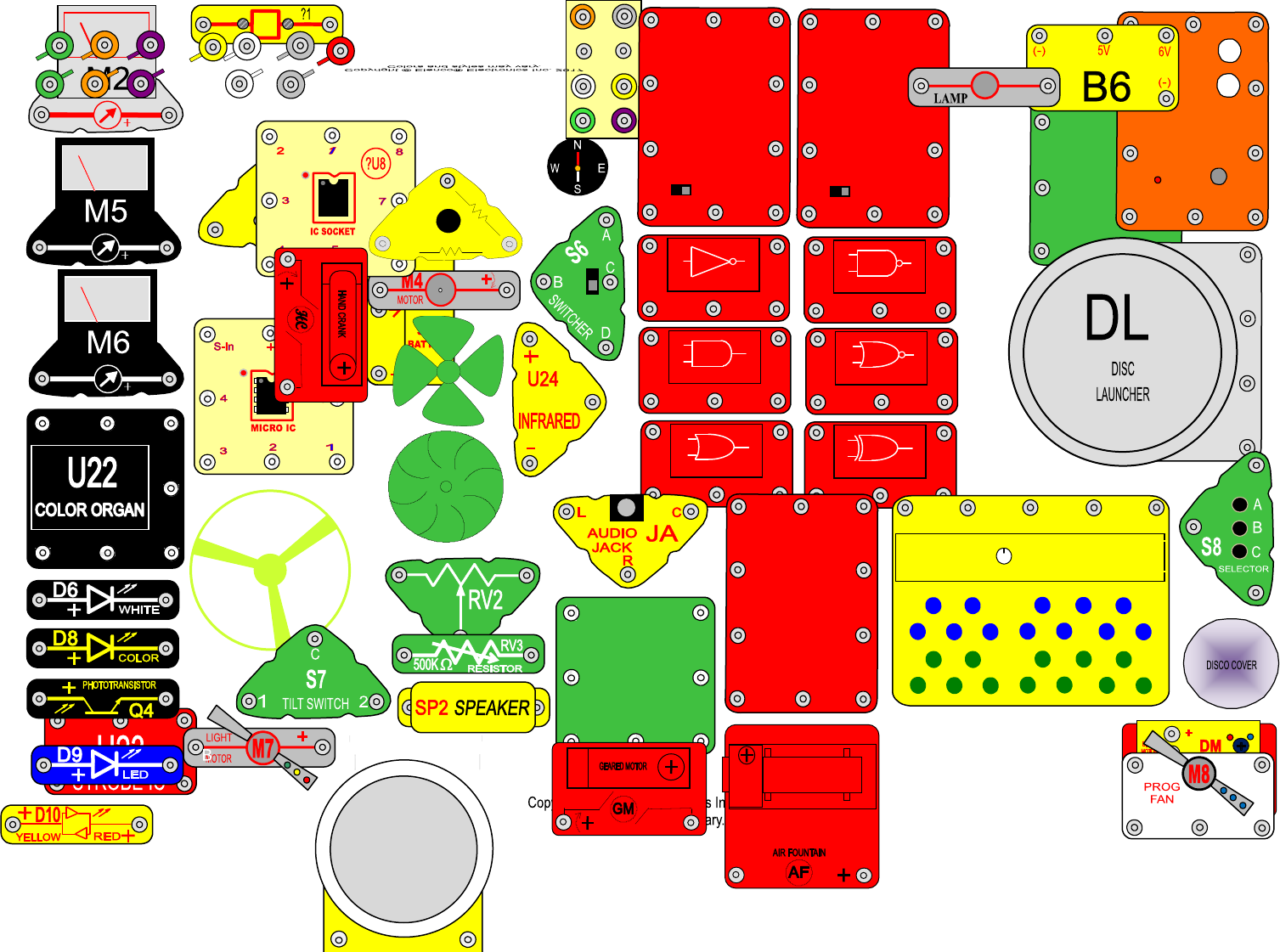 Elenco® provides the part symbols below so that our customers can make their own custom circuit drawings.