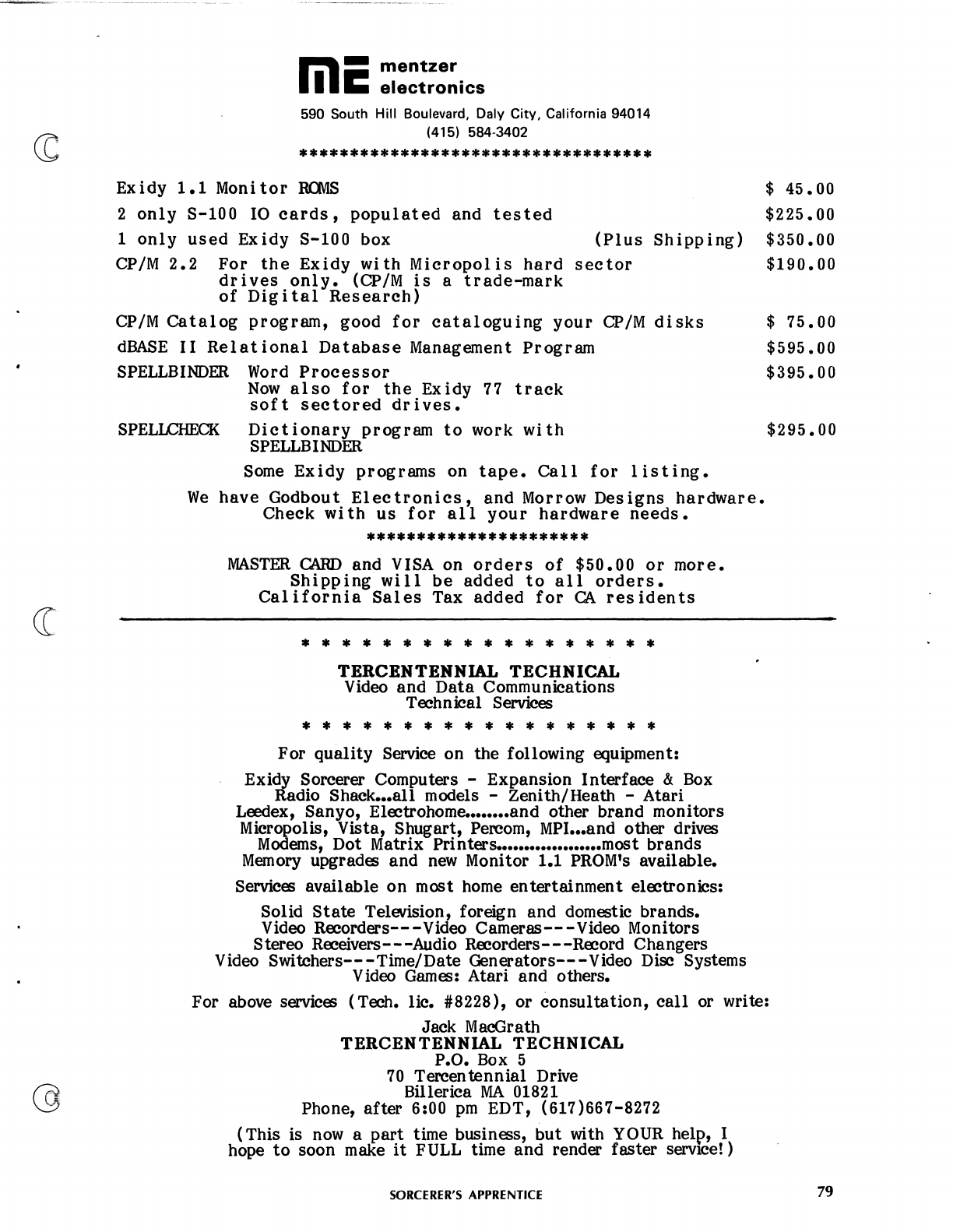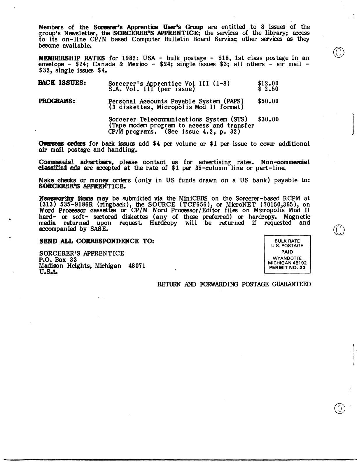 group's Newsletter, the SORCERER'S APPRENTICE; the services of