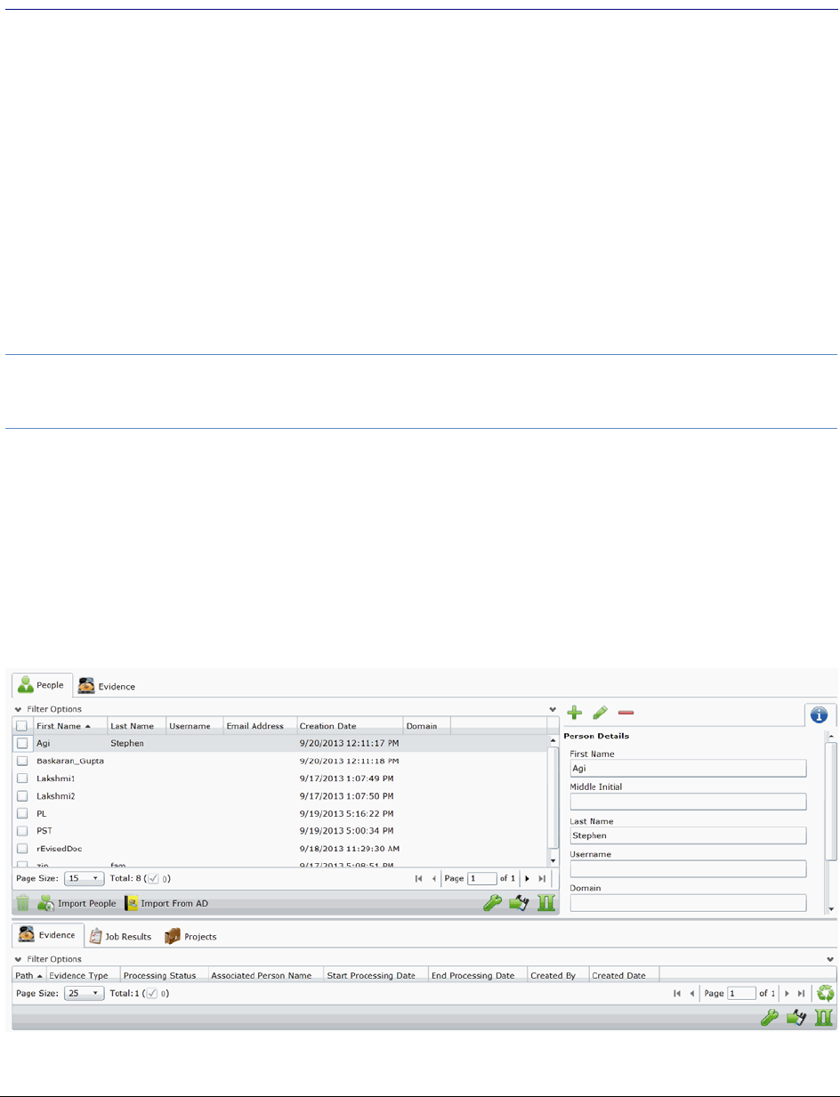 It is important to note that FTK does not use people, but rather has evidence groups. Evidence groups let you