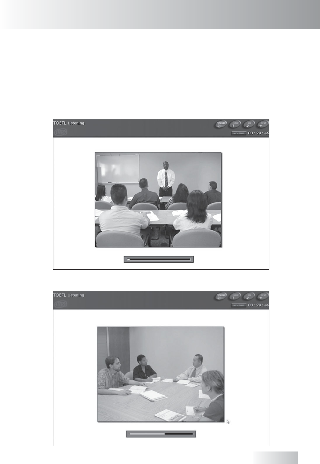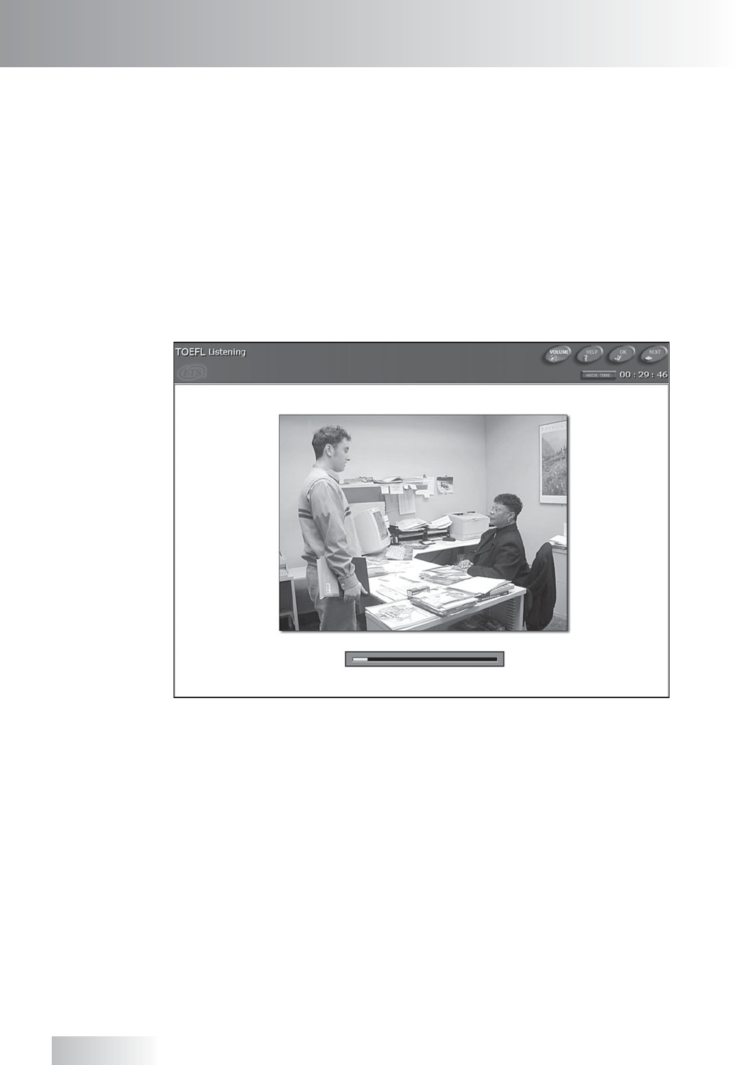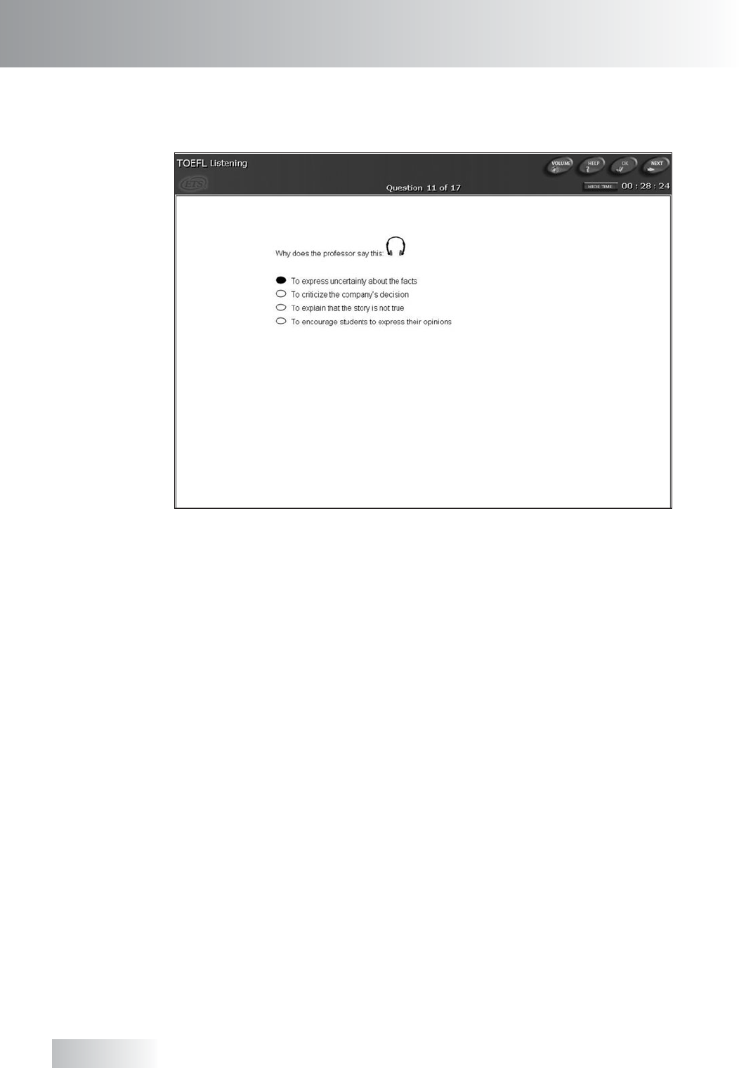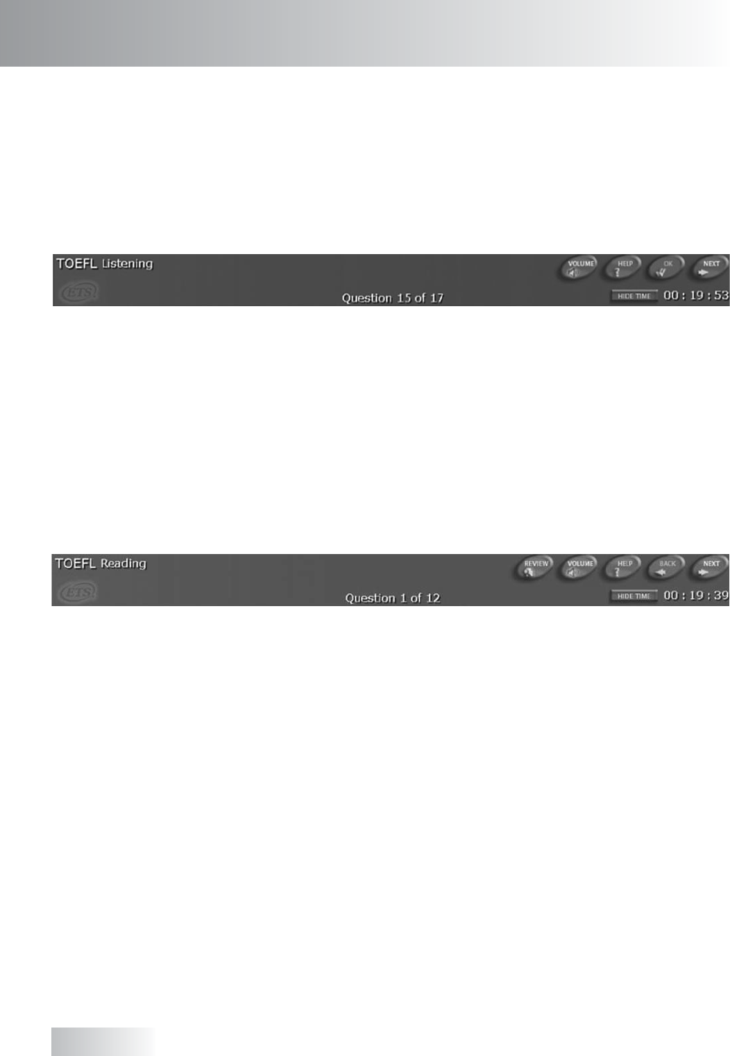 On the Listening, Speaking, and Writing test sections, you will listen to audio tracks. An Audio Control
