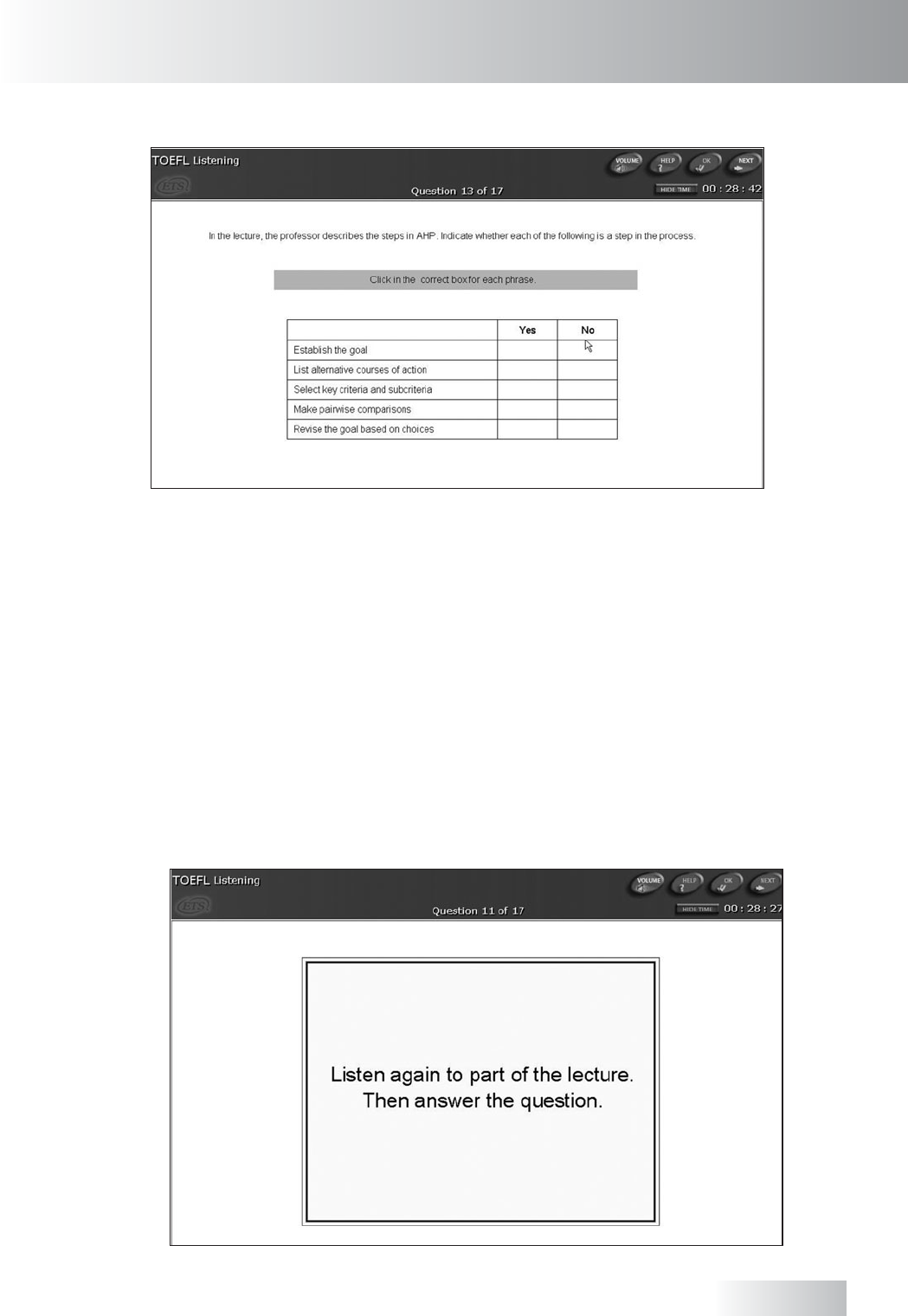 The test questions on these files are from actual TOEFL tests. However, the screen and delivery formats