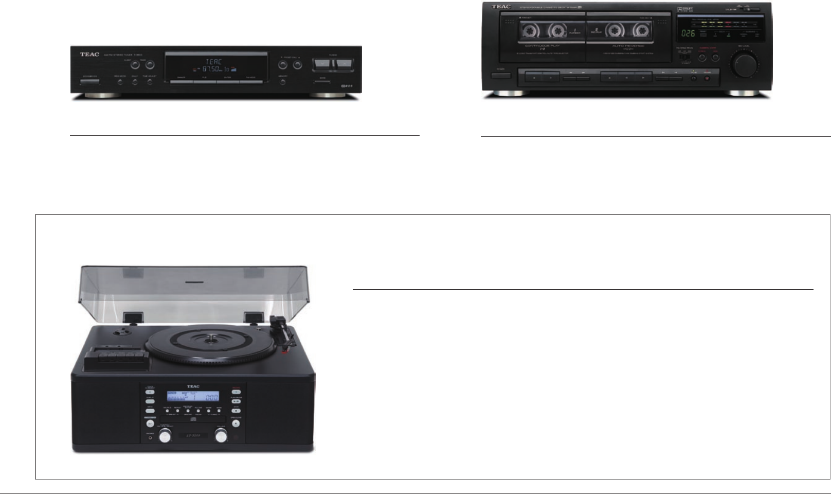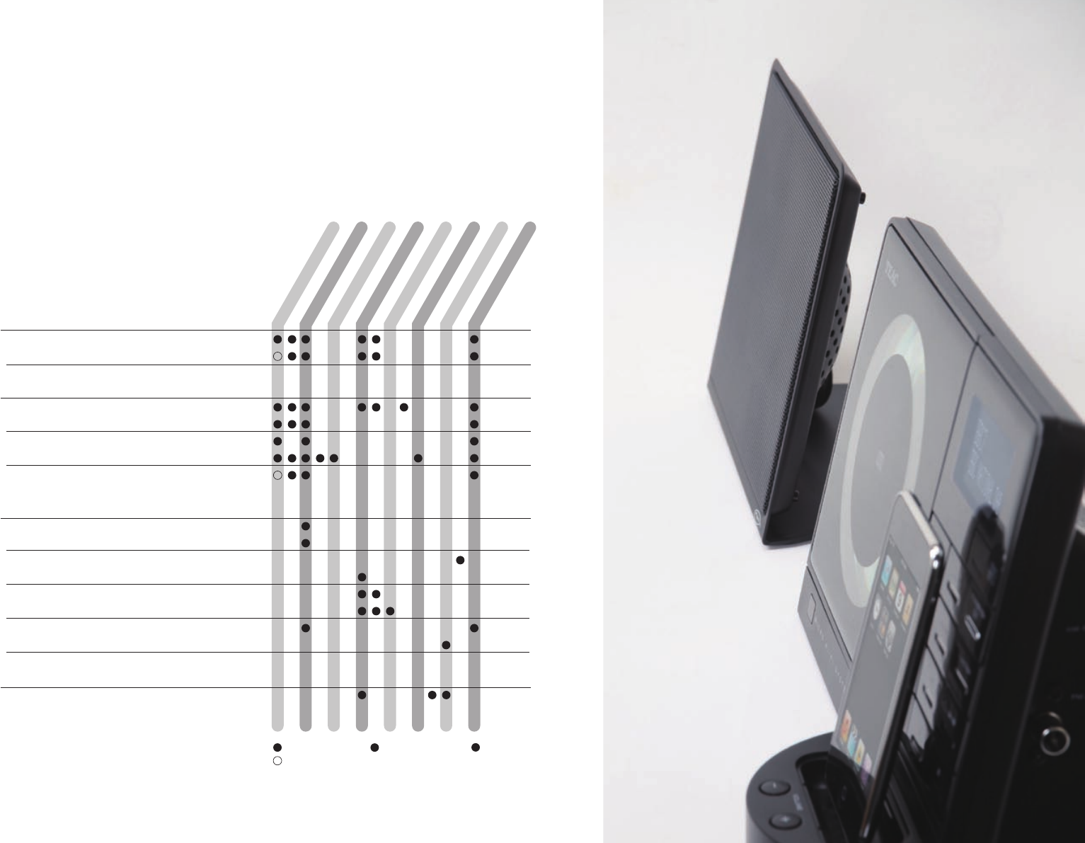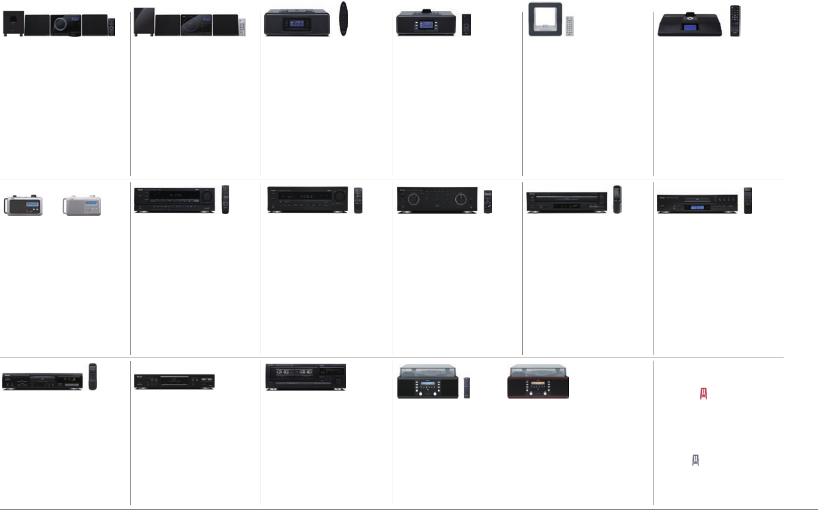 Please note that not all models and colours are available in every countries. Design and specifications subject to change without notice. © 2009 TEAC Corporation. All Rights Reserved. All text, images, graphics and other materials on this catalogue are subject to the copyright and other intellectual property rights of