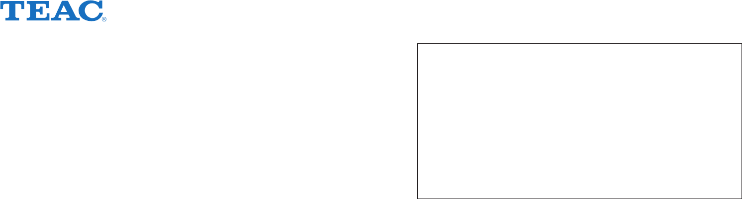 TEAC EUROPE GmbH Bahnstrasse 12, 65205 Wiesbaden-Erbenheim, Germany