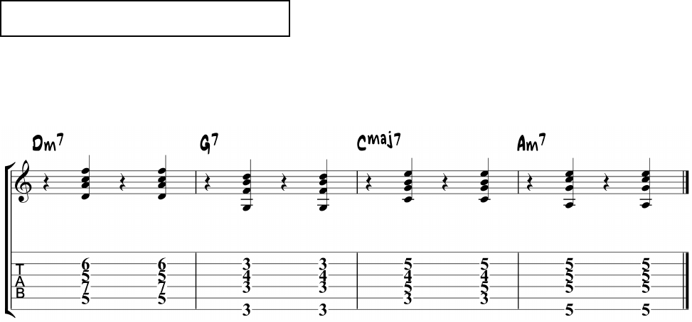 chords used are typical, three-note shapes that many jazz guitarists use in this