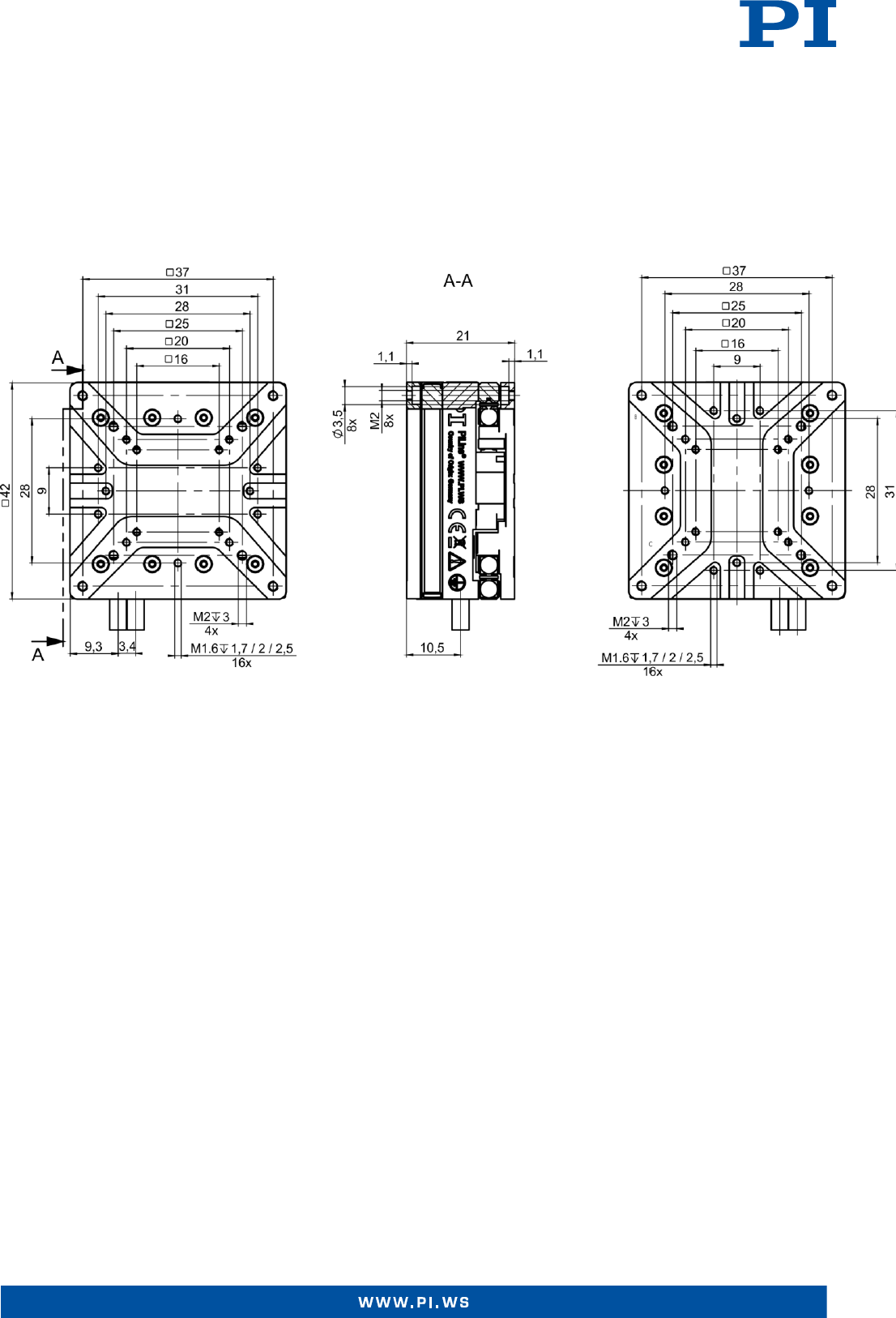 PILine® XY stage, compact design, 22 mm × 22 mm travel range, 2 N drive force, 10 nm sensor resolution