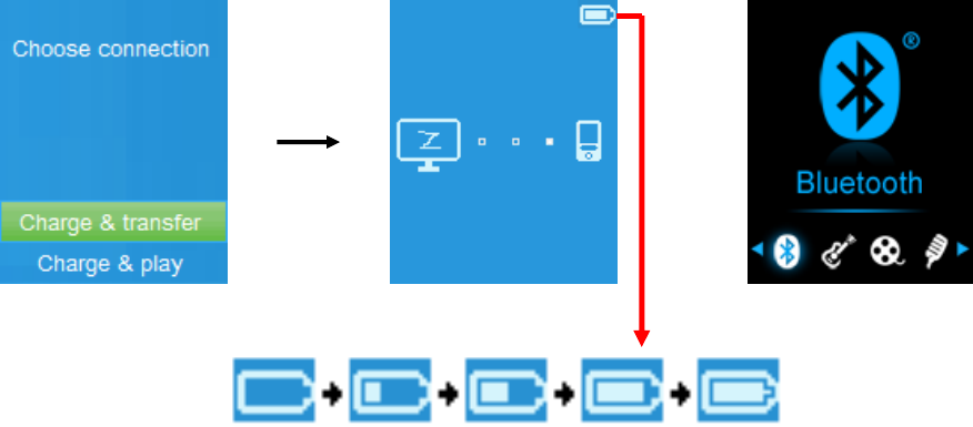 3 hours or until the battery status icon in the “Connect” screen