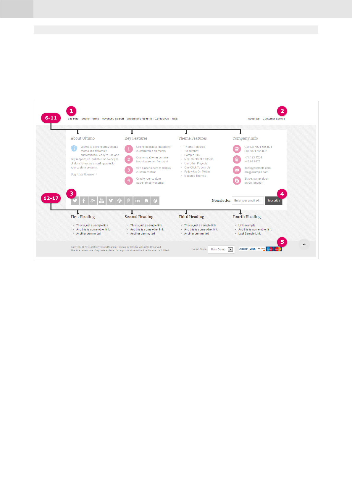 •Chapters from 7. to 12. – specify a list of all theme settings available in the theme