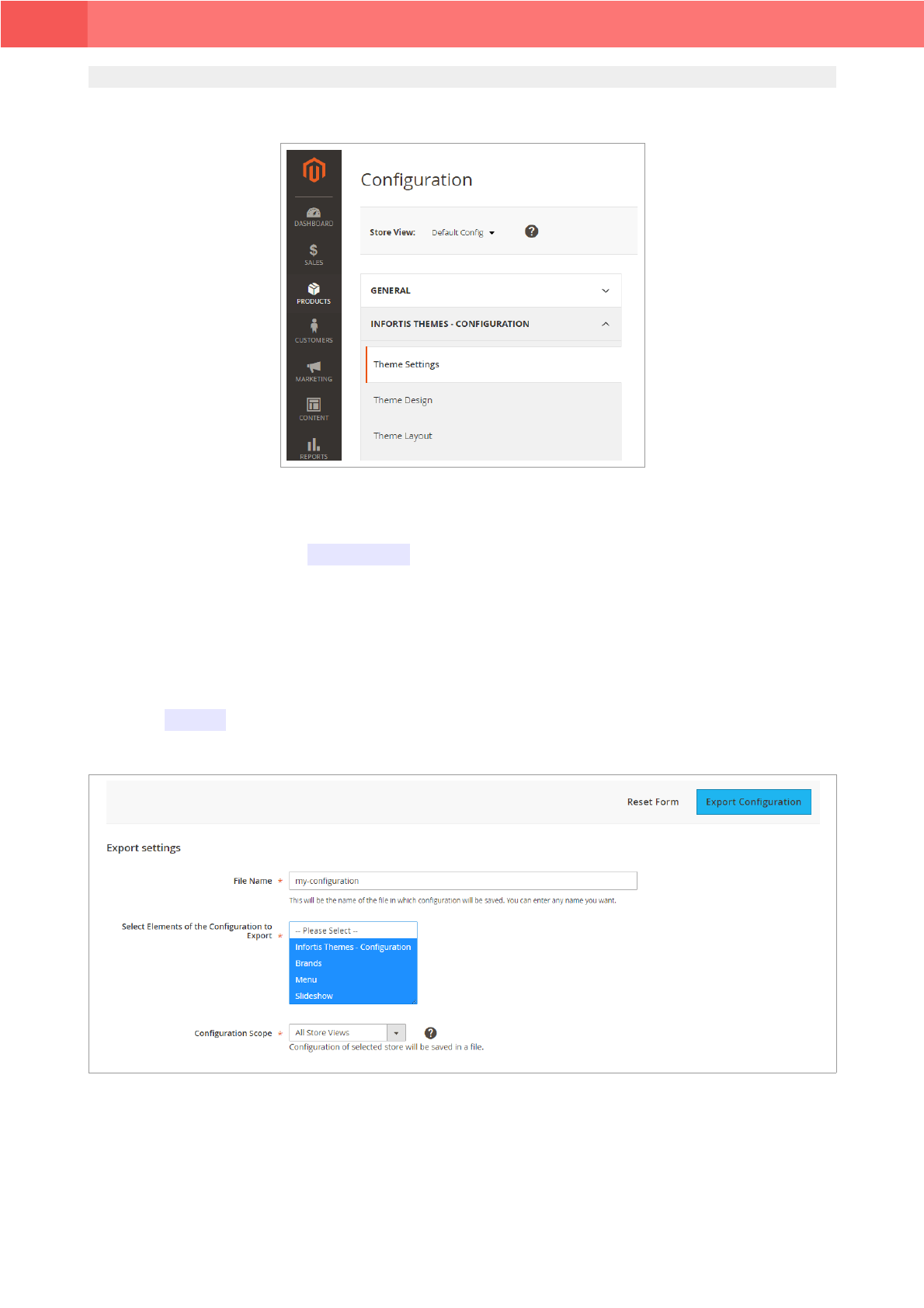 admin panel. Each chapter refers to specific section of theme admin panel.