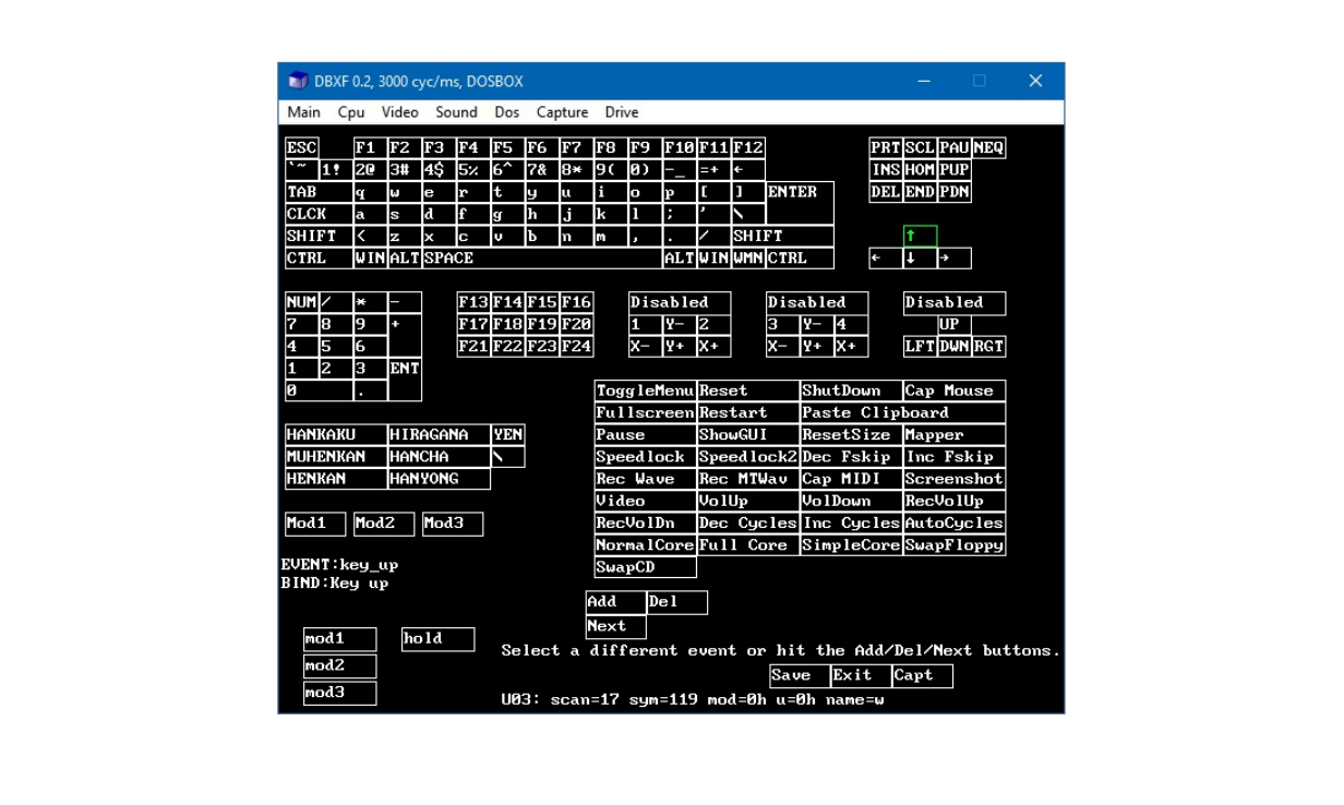 Launch the mapper immediately after starting DBXF. Useful to try to resolve keyboard or joystick problems. And remap key bindings.