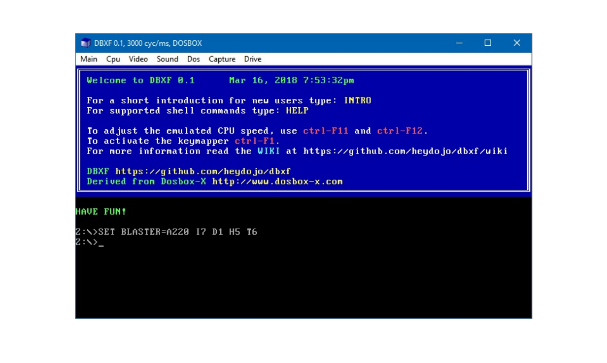 The welcome message is run every time DBXF is started. If you are unfamiliar with DOS, please take the time to explore the intro.