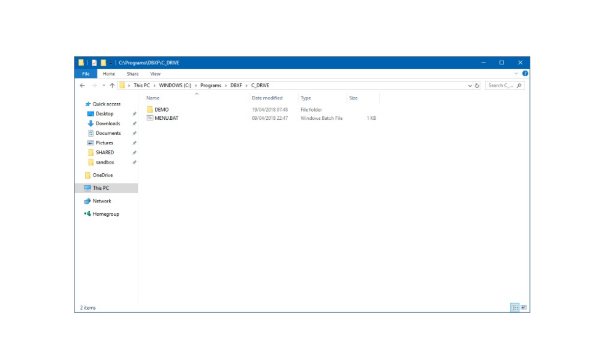 D:\DBXF\DBXF.EXE -c "MOUNT C D:\DBXF\C_DRIVE" -securemode -conf D:\DBXF\CONF\dbxf.conf