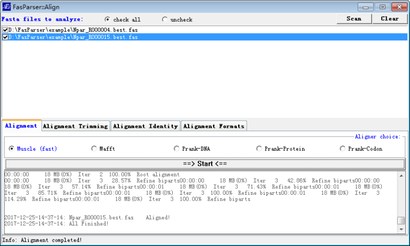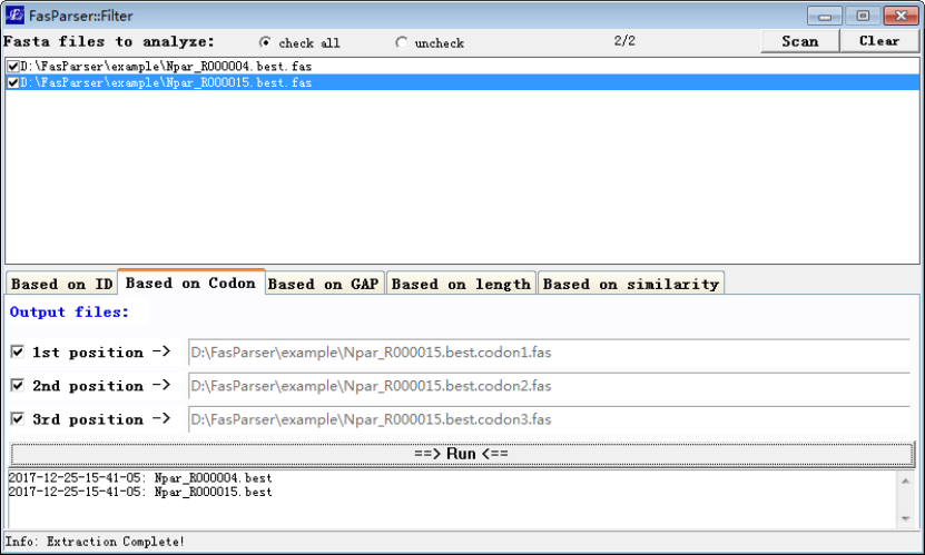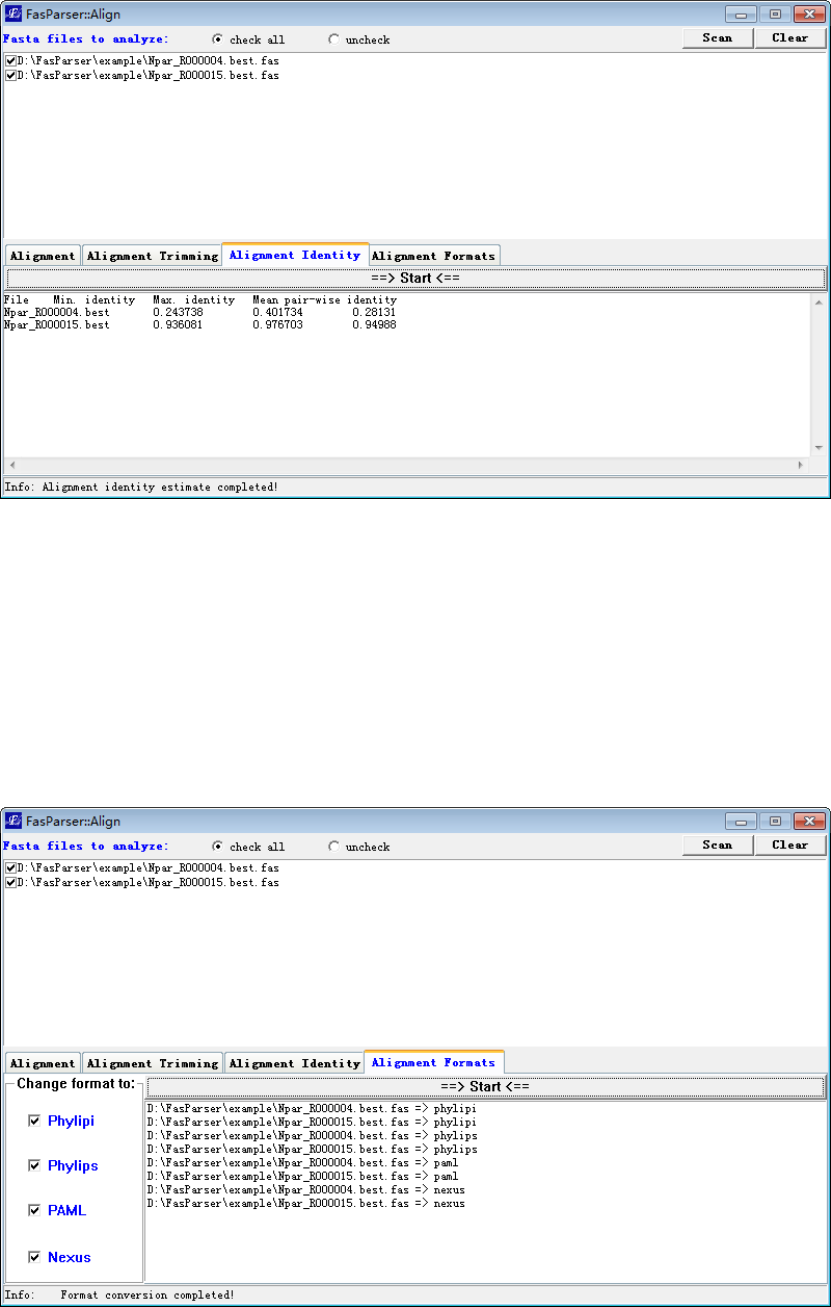 in a simple way. Presently, the main functions of FasParser2 involve: (1) batch