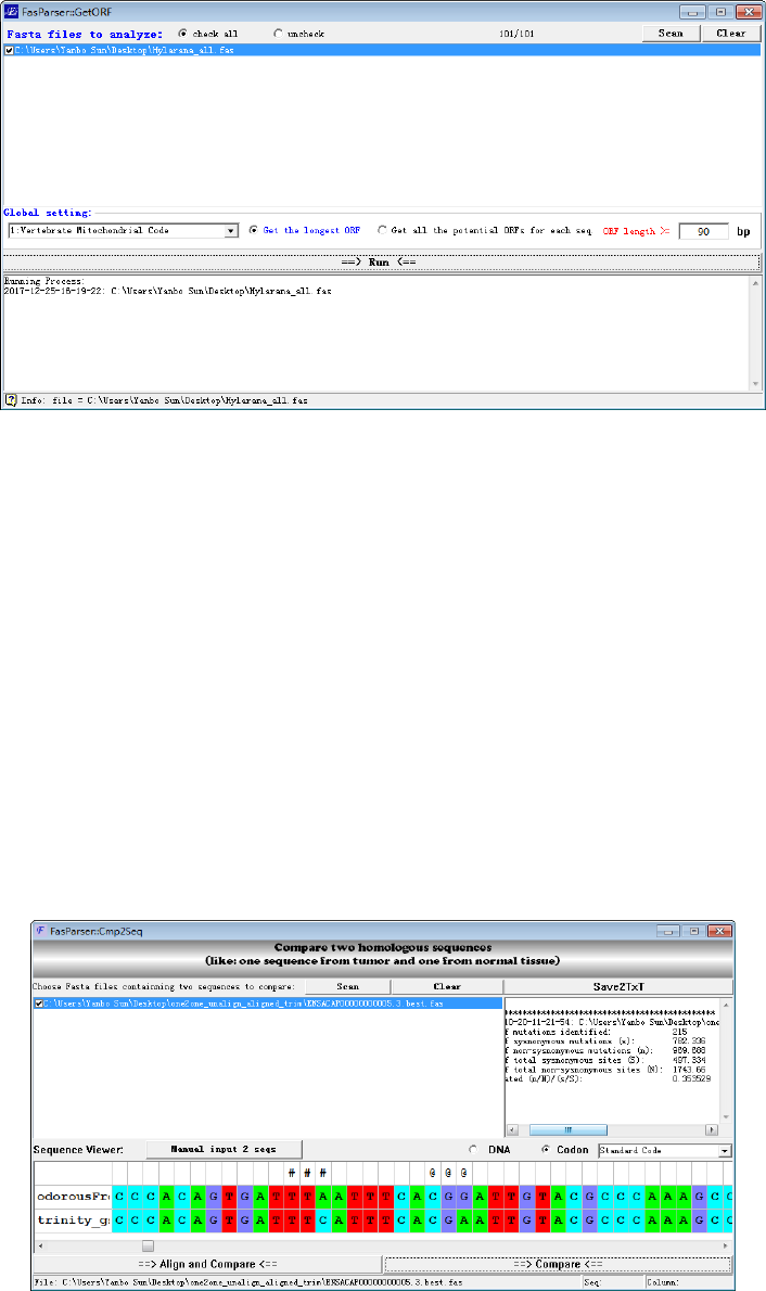 batch mode to conduct such analyses, with genetic code selected. The output files