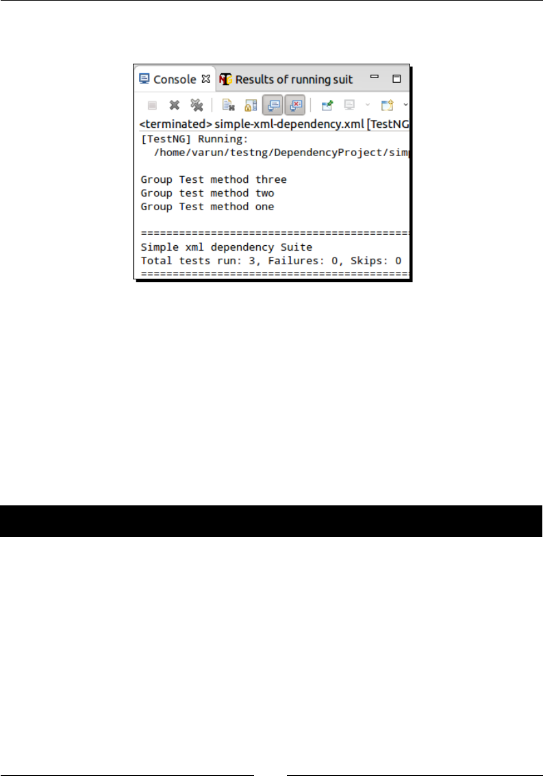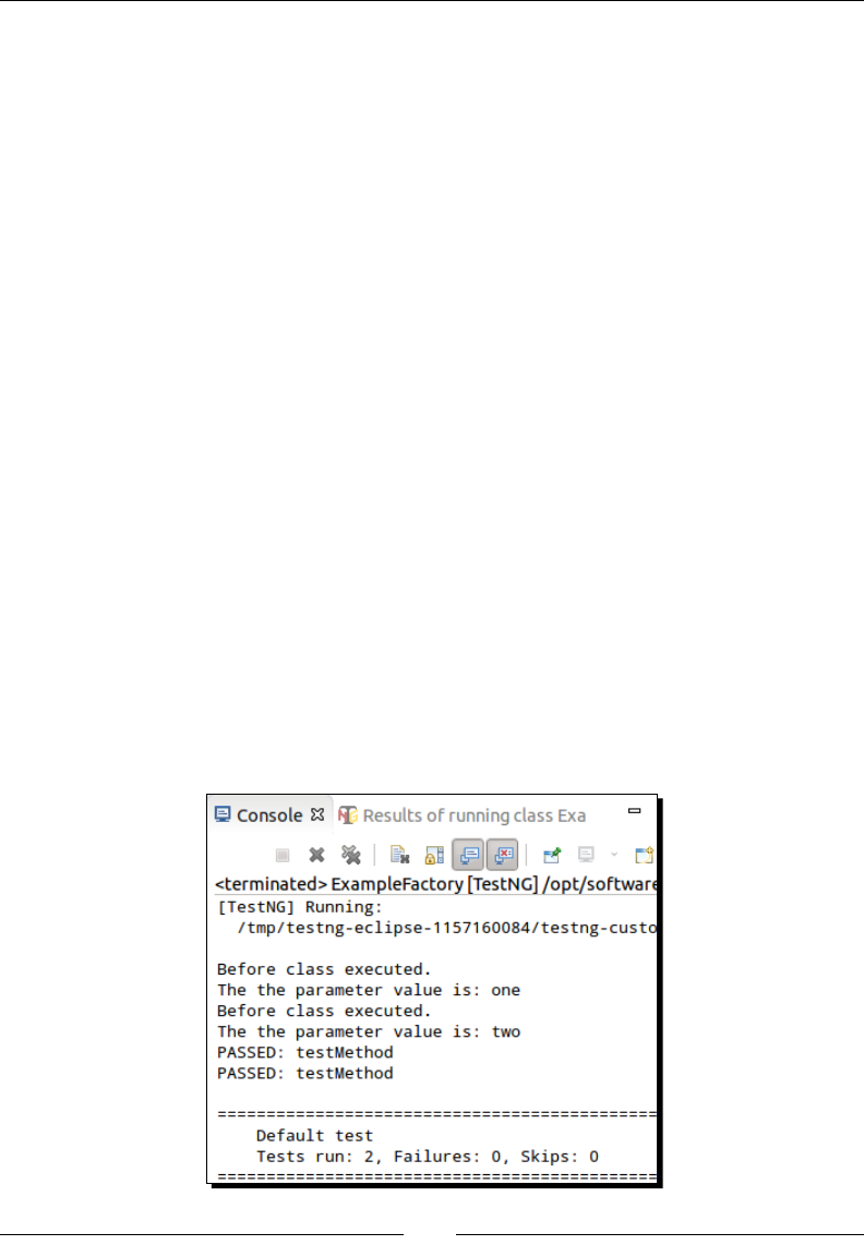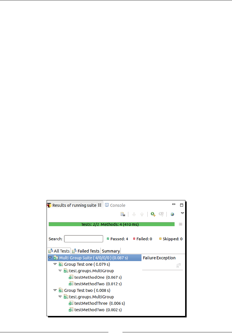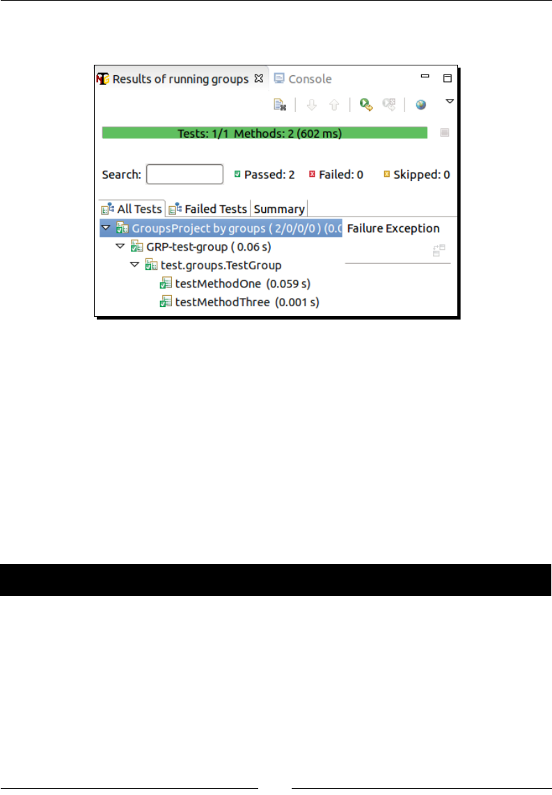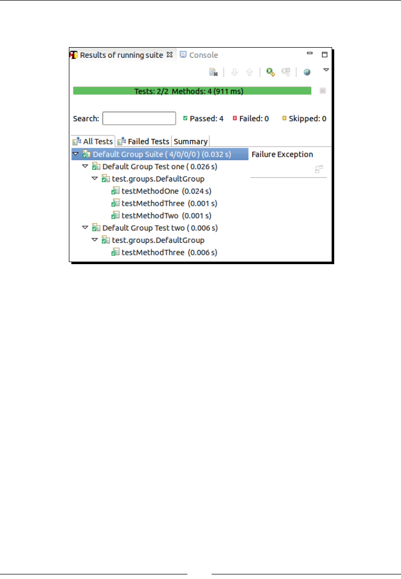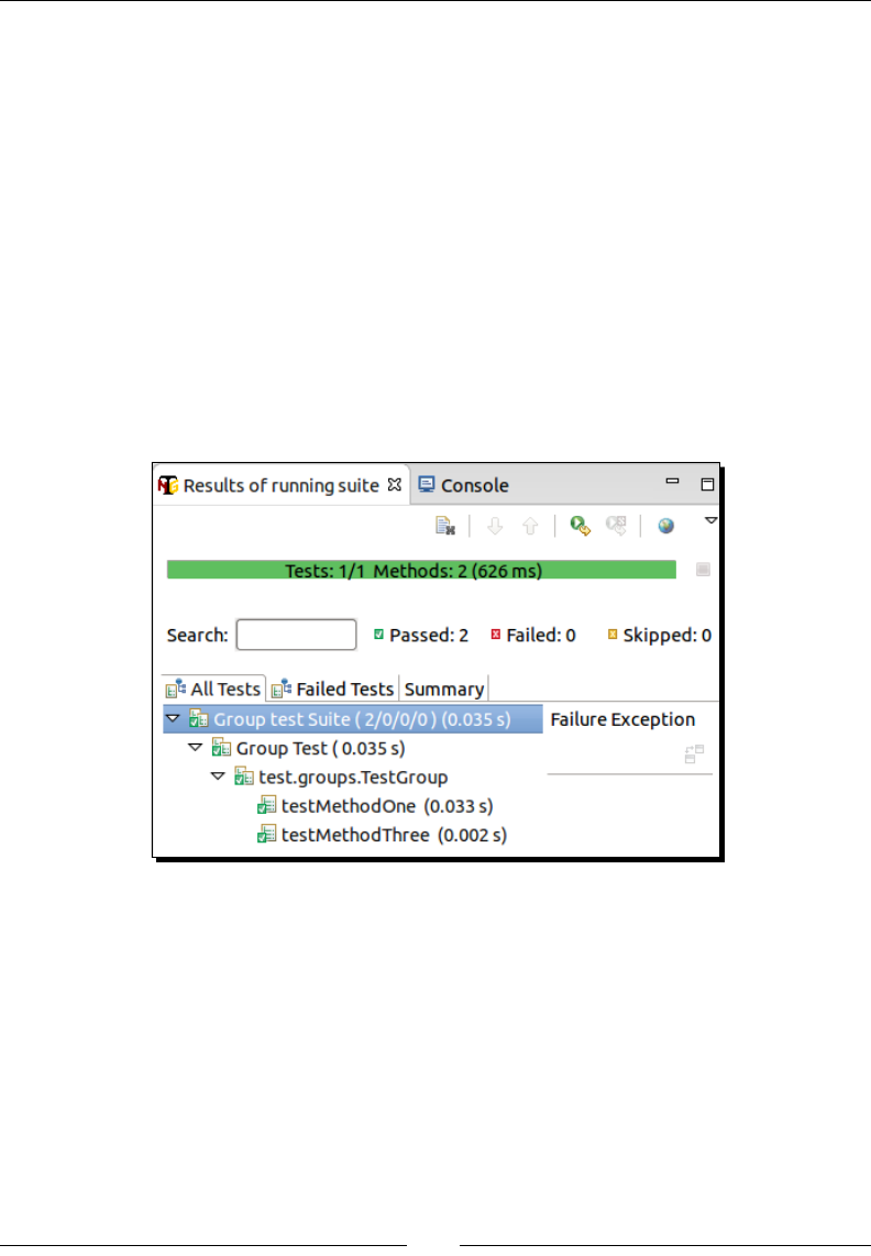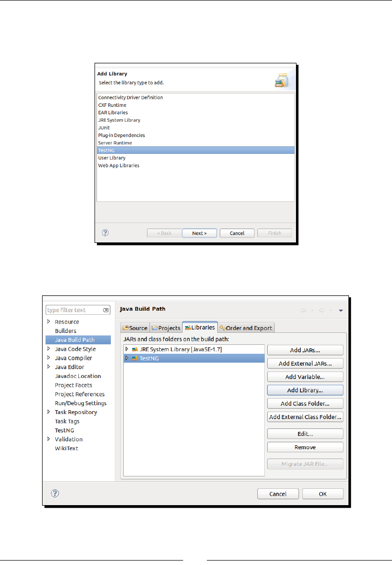 - Time for action – configuring Eclipse to run a particular TestNG XML file