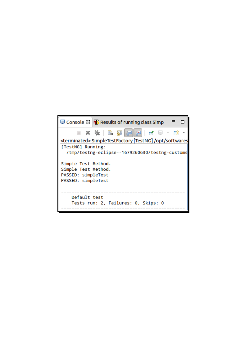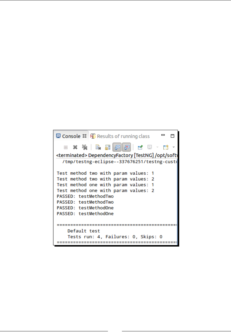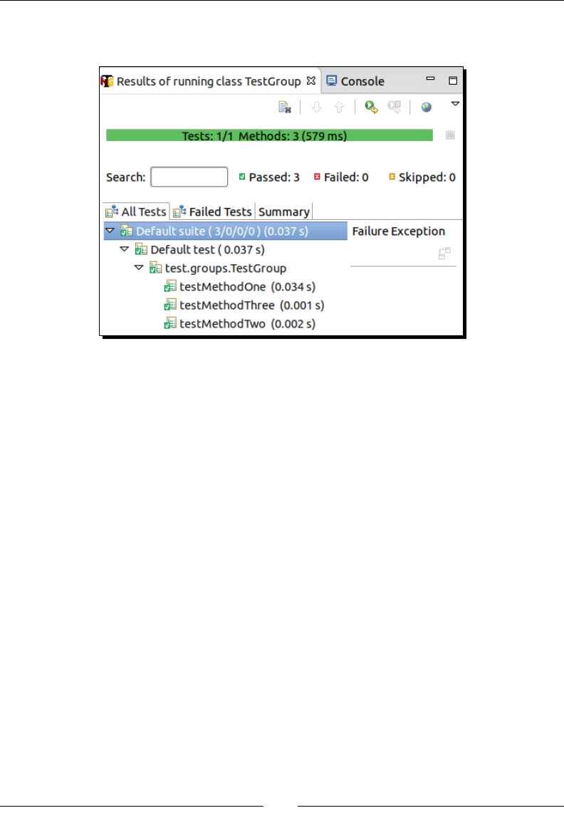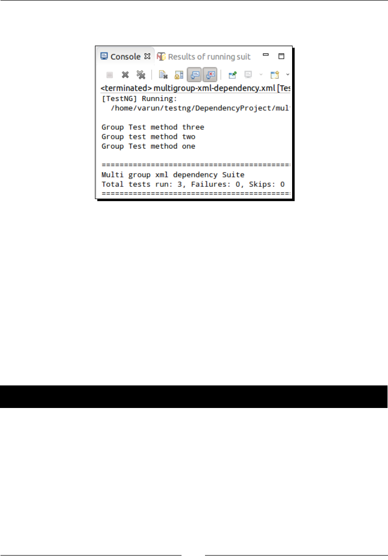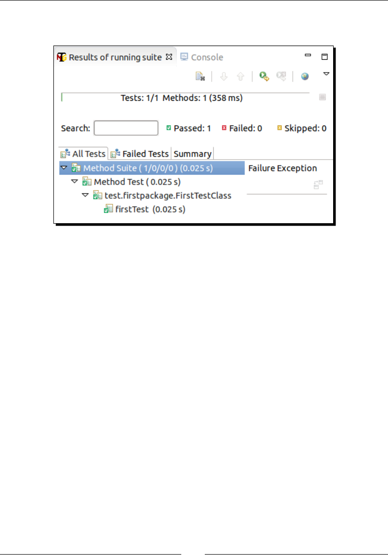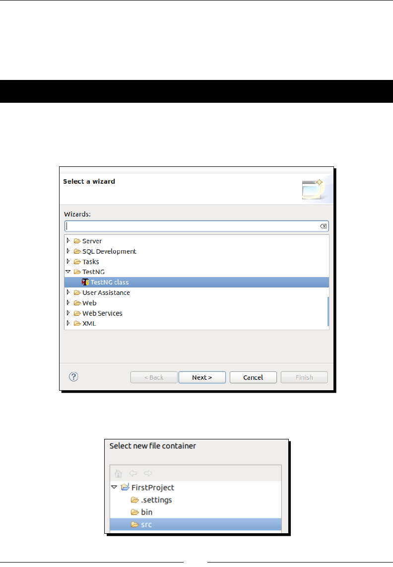 - Time for action – configuring Eclipse to run a particular TestNG XML file