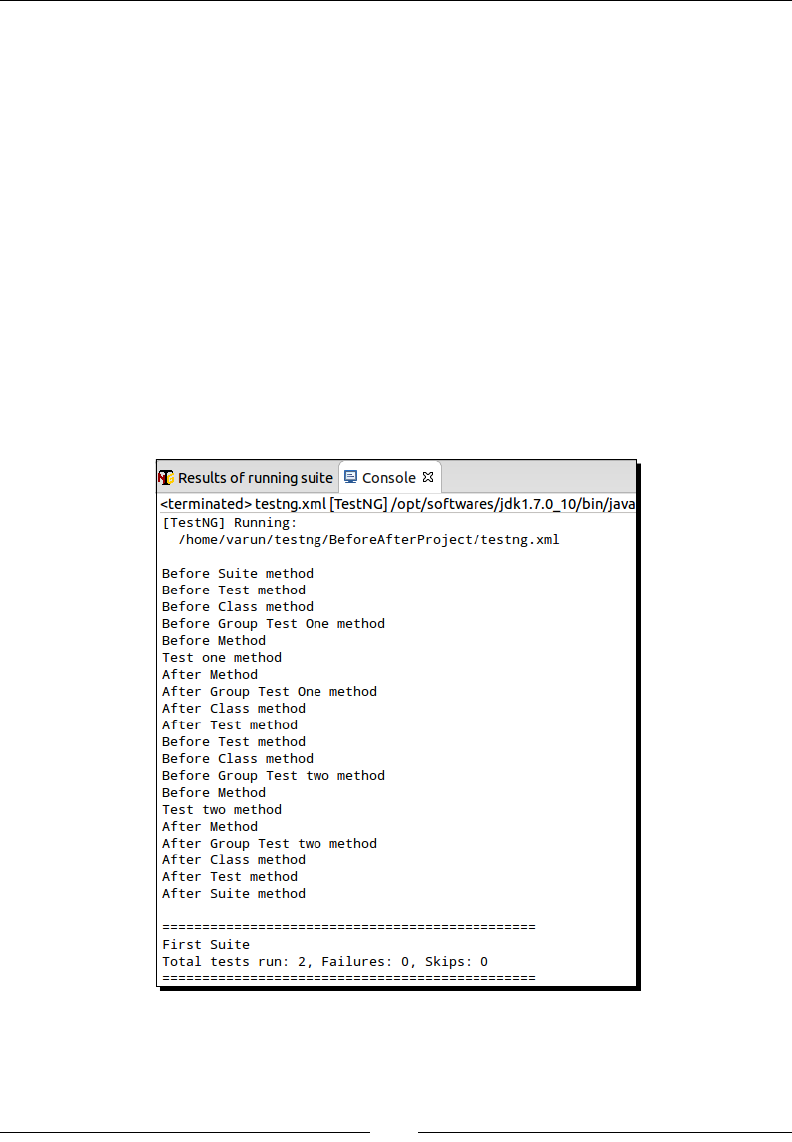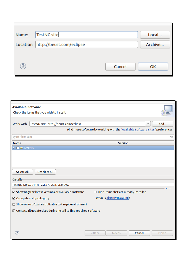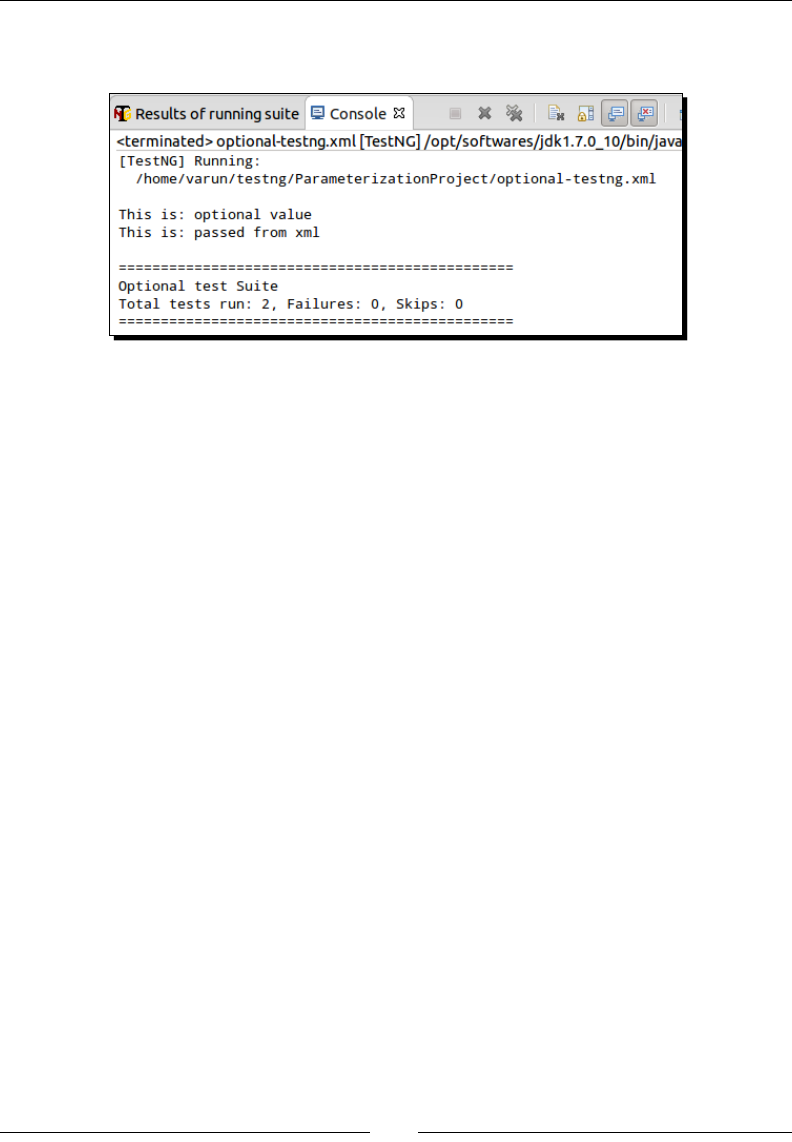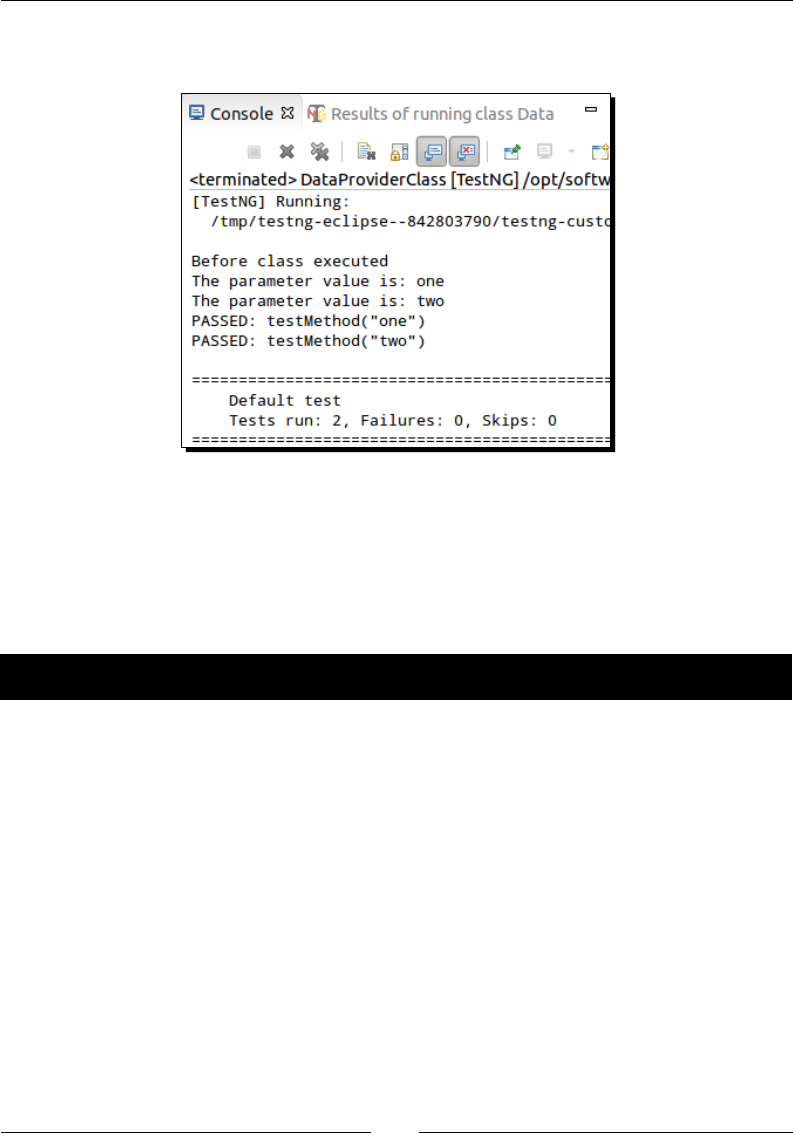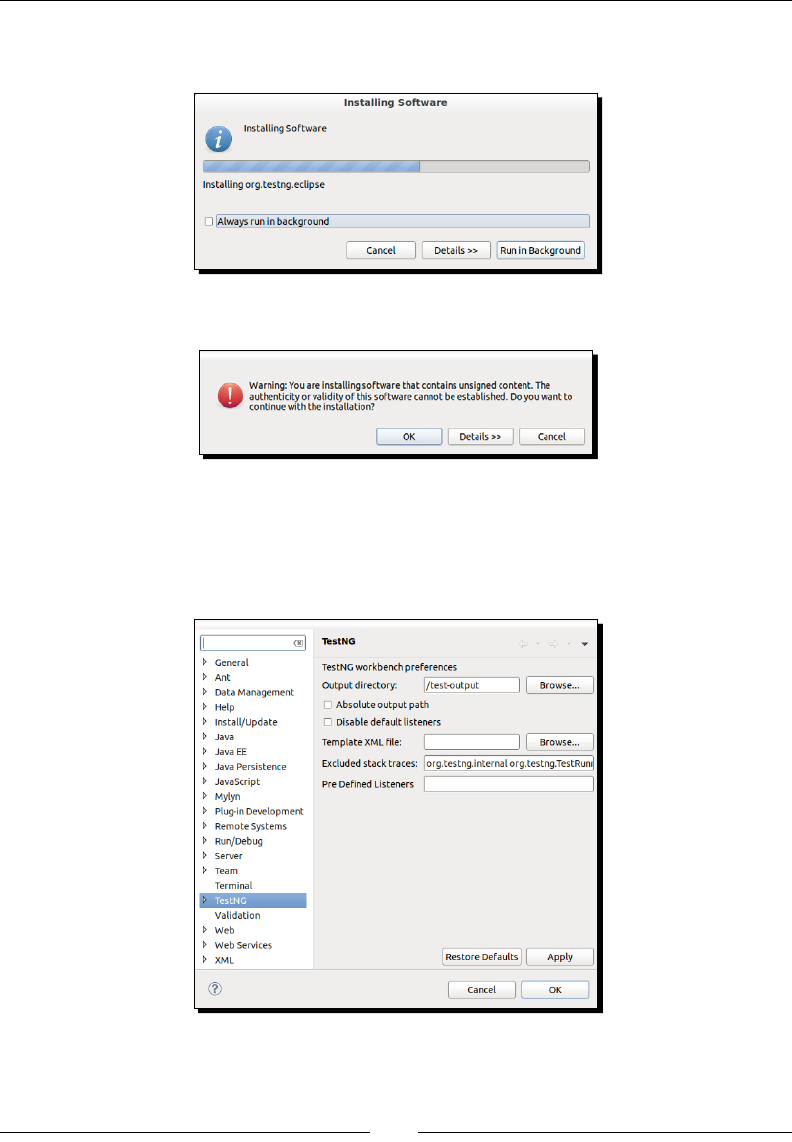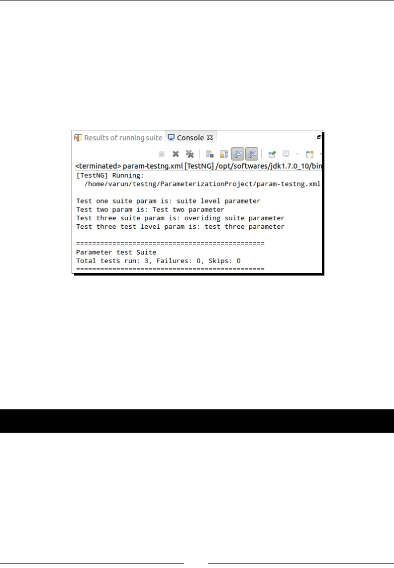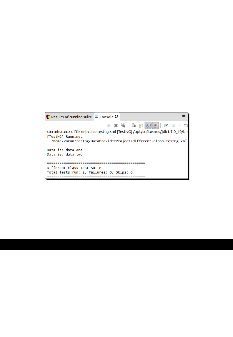 - Time for action – configuring Eclipse to run a particular TestNG XML file