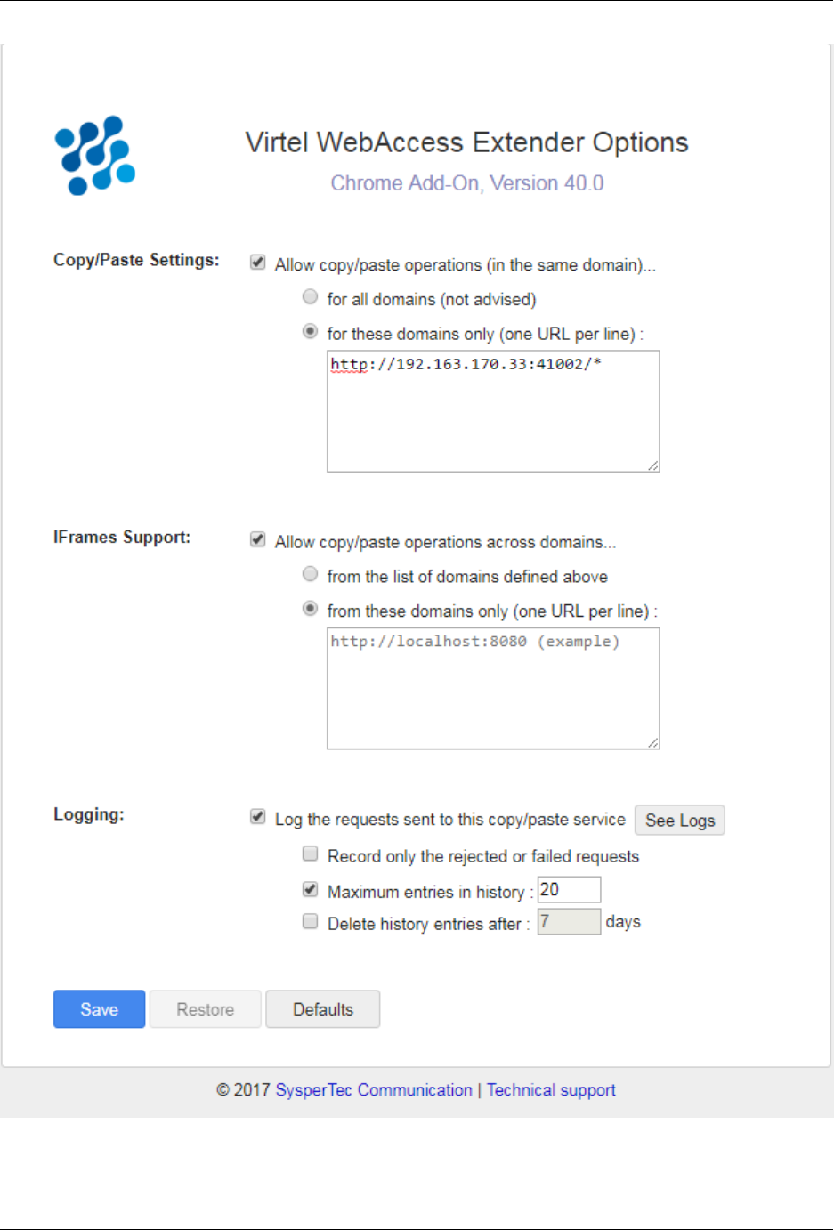 Virtel Web Access Security