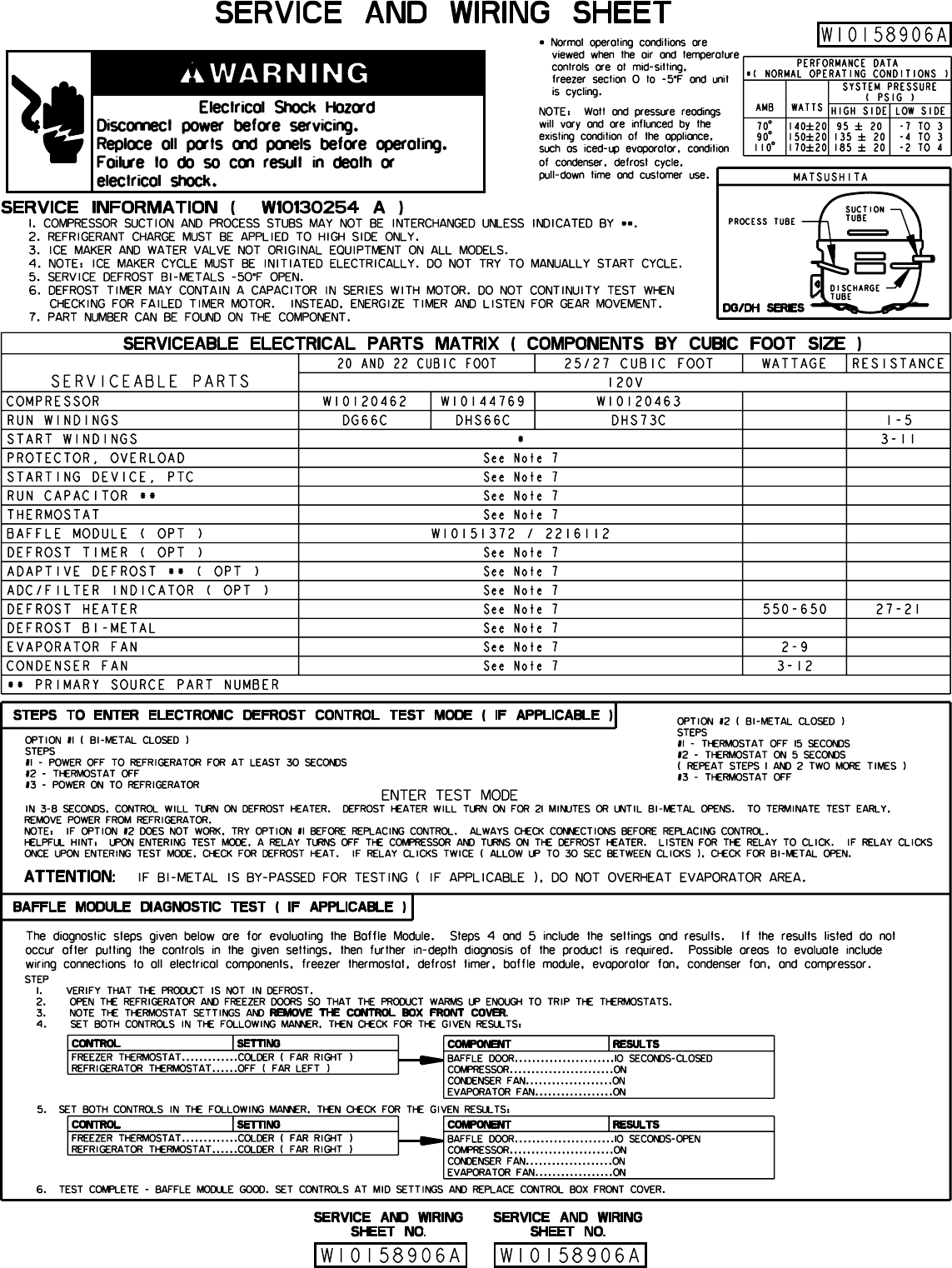 LIT SERVICE AND WIRING SHEET W10158906 Whirlpool Refrig ED2KVEXVL01