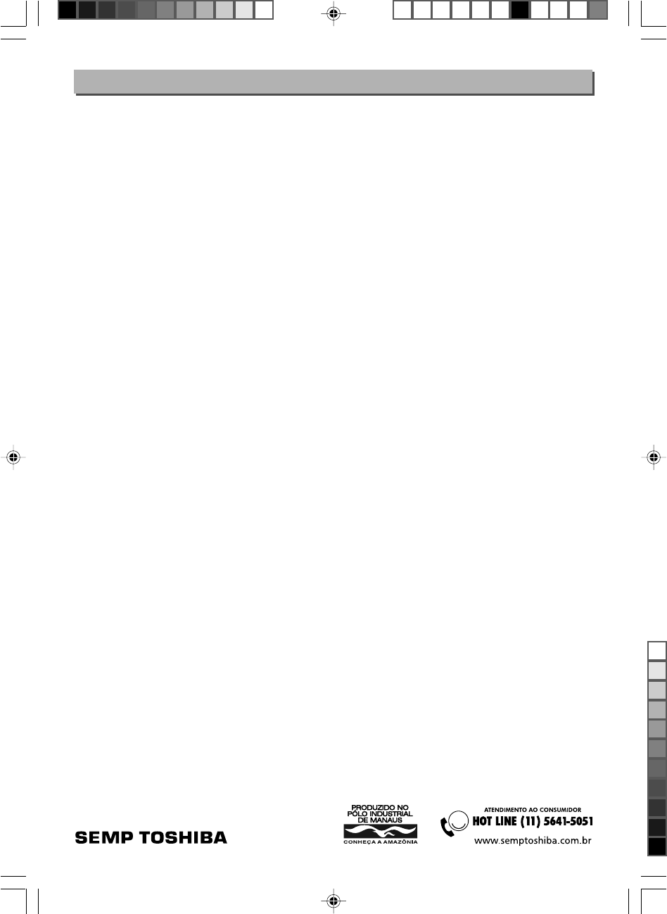 MEIO AMBIENTE: A SEMP TOSHIBA preocupada com o Meio Ambiente procurou desenvolver este produto