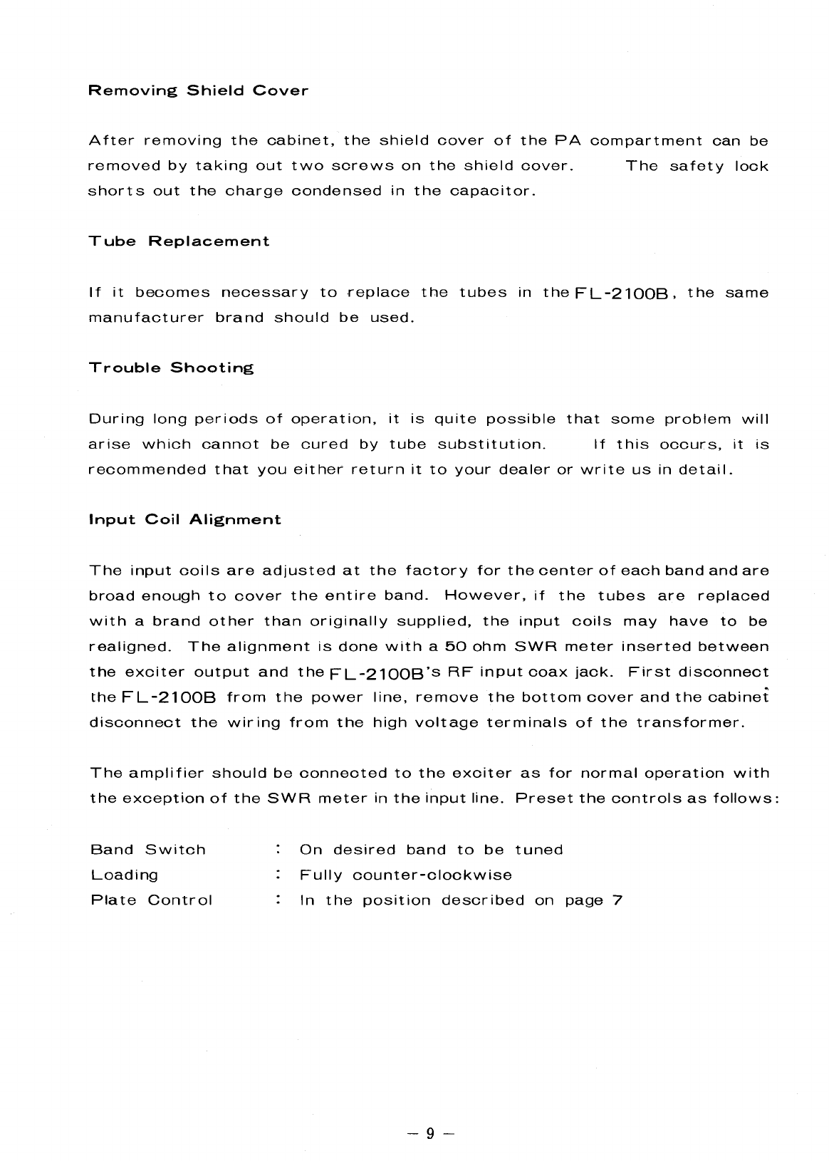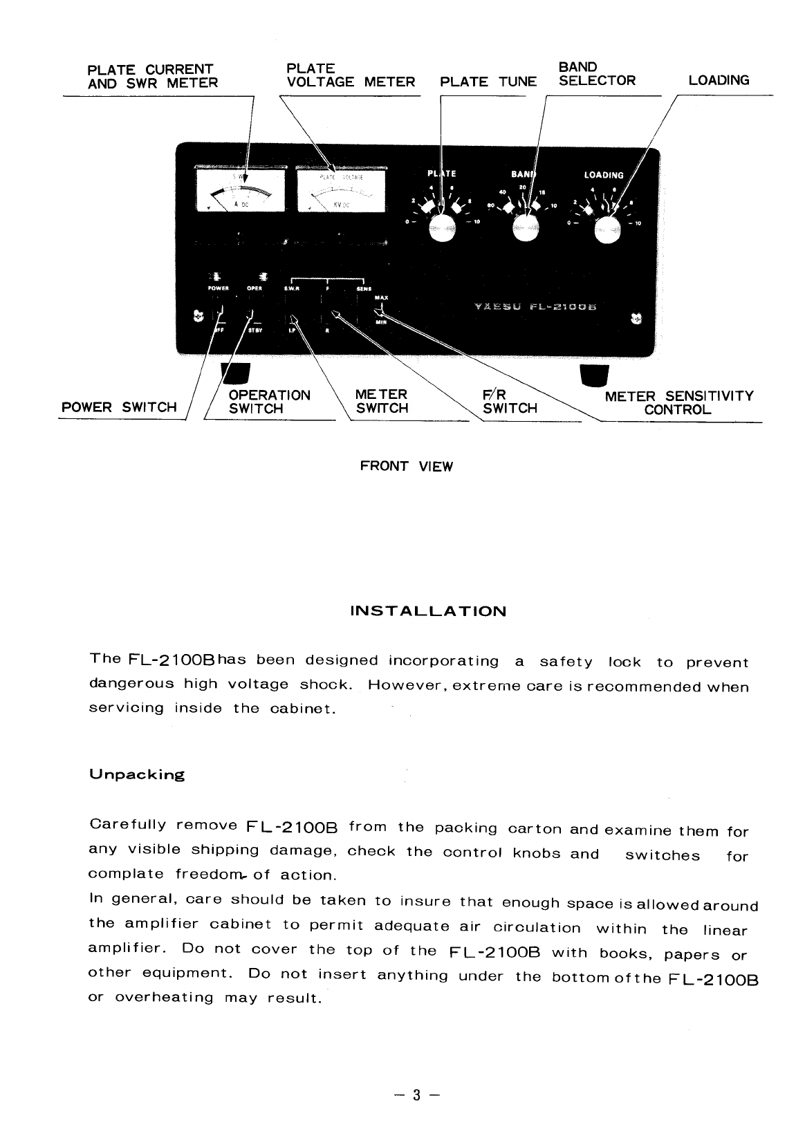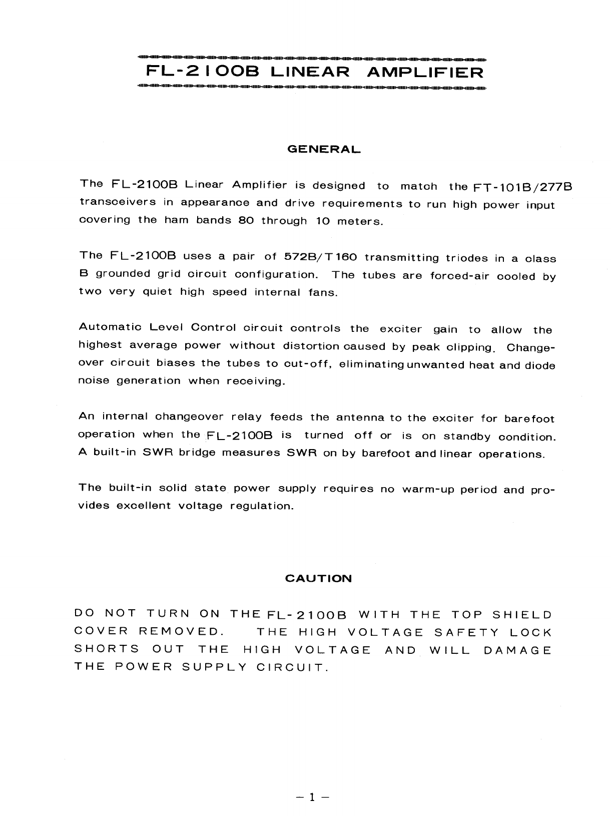 Instruction Manual YAESU FL 2100B Linear Amp User