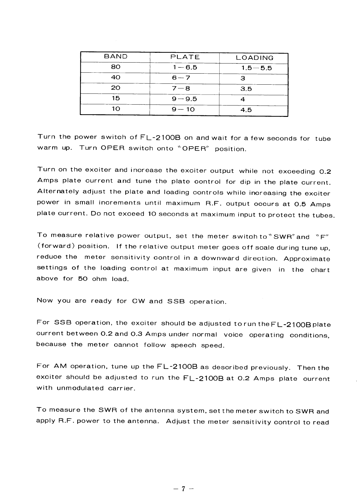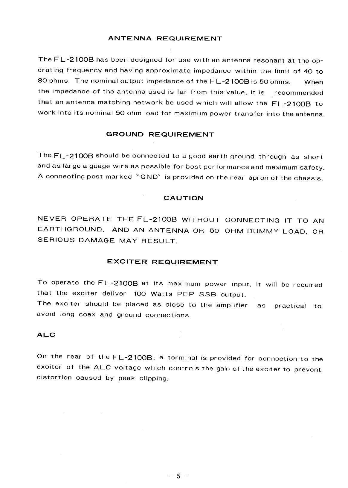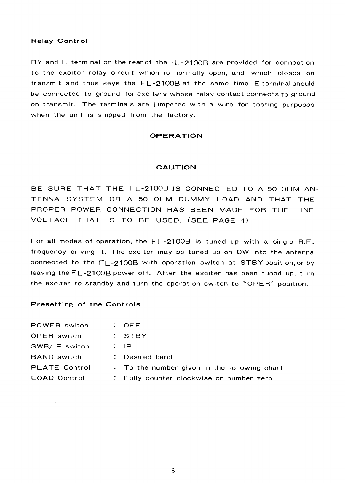 Instruction Manual YAESU FL 2100B Linear Amp User