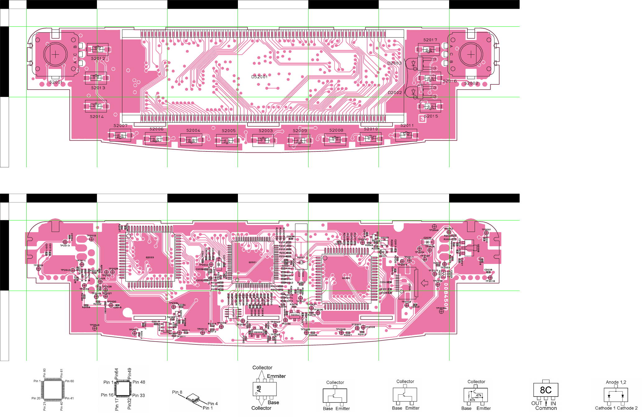 side has only chip components, and the other has either a mixture of both chip and leaded components (trimmers, coils,