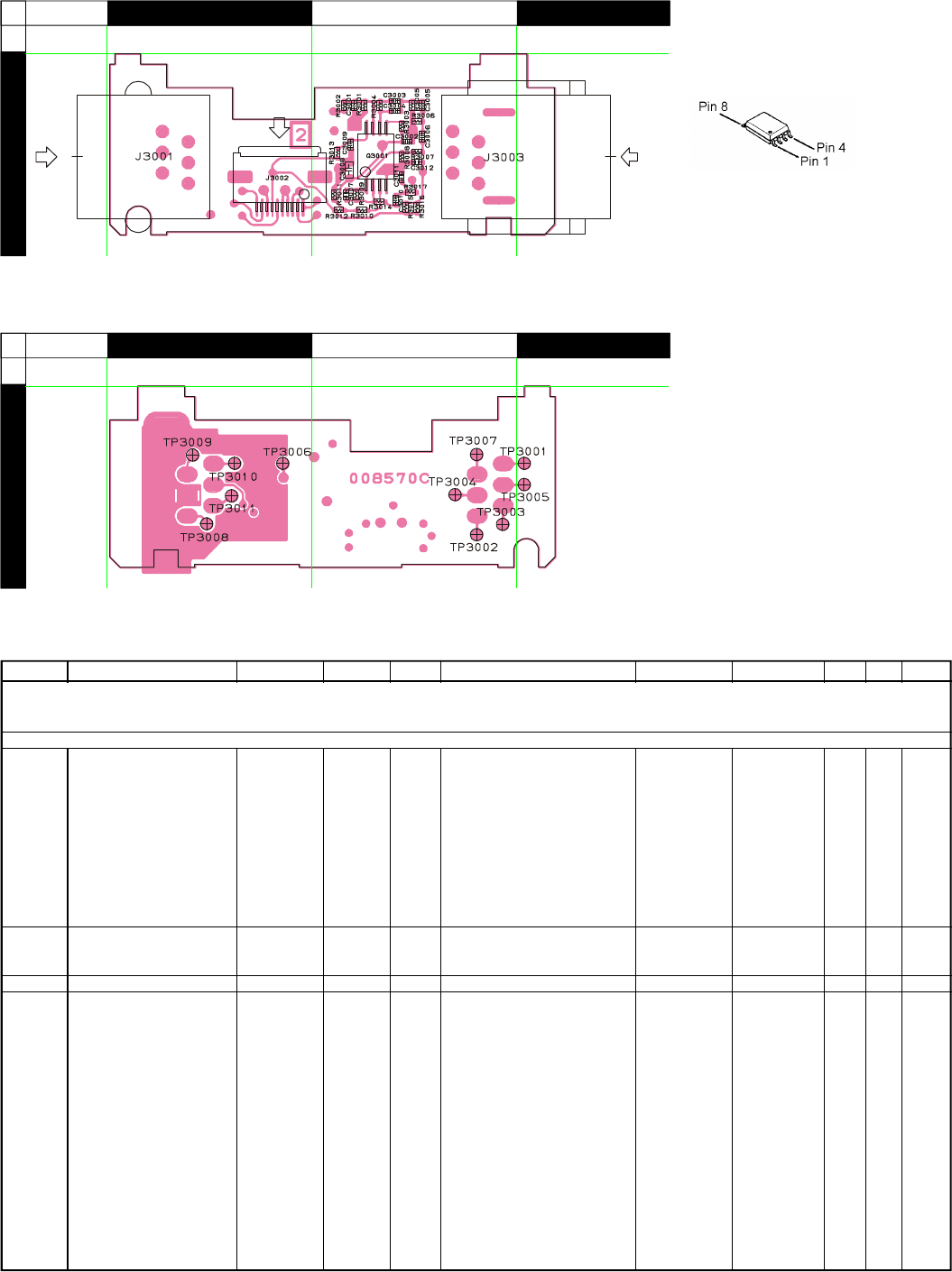 Two PCB layout diagrams are provided for each double-sided circuit board in the transceiver. Each side of thr board is
