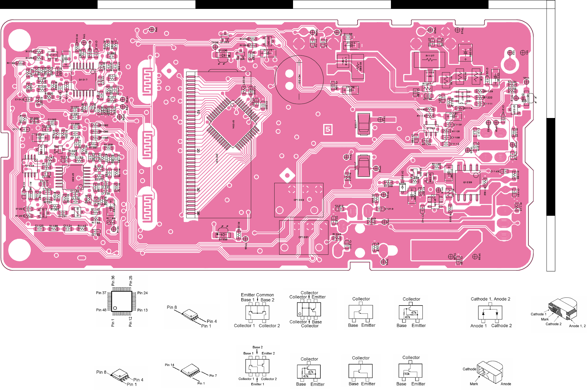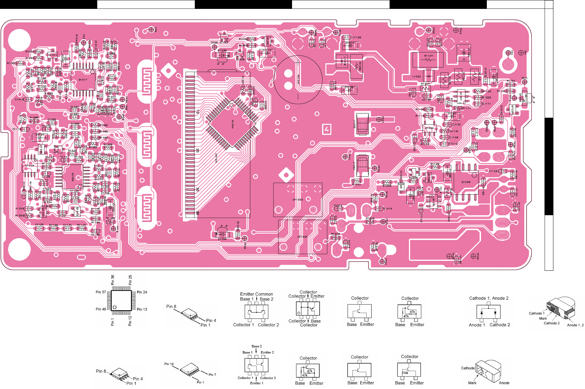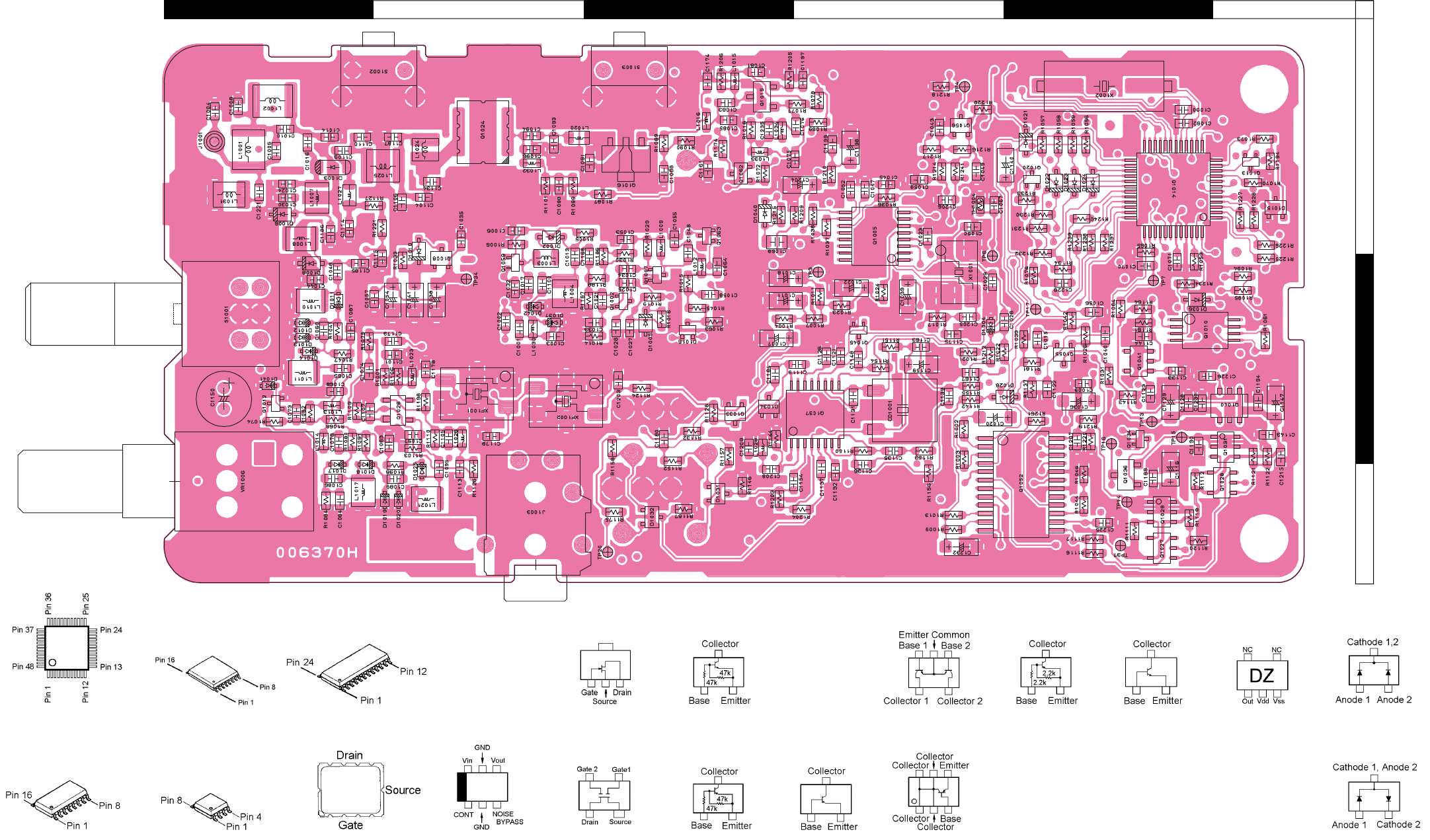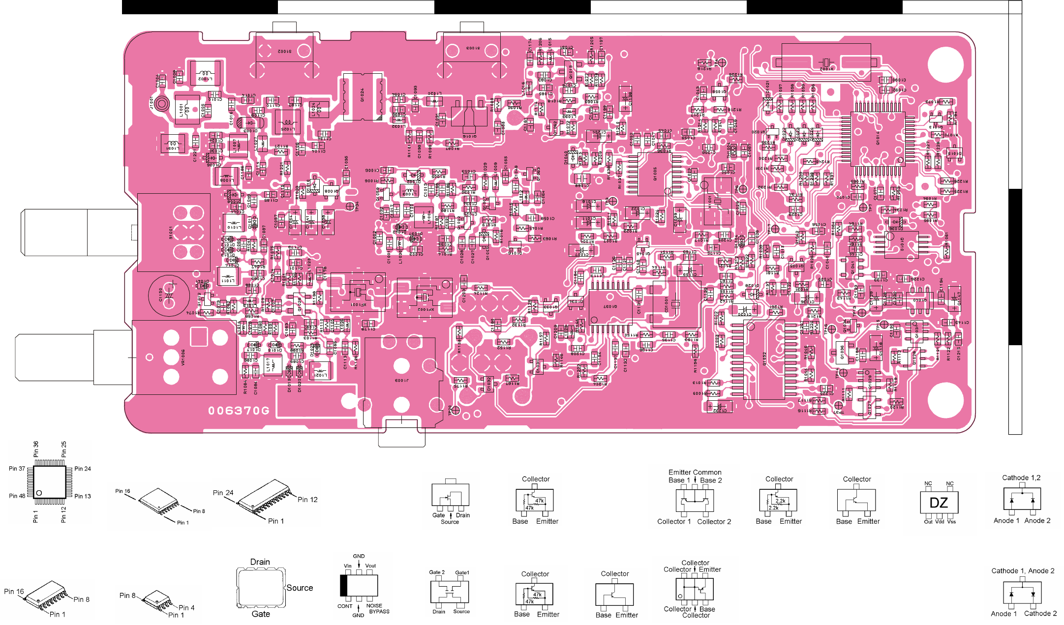 Two PCB layout diagrams are provided for each double-sided circuit board in the transceiver. Each side of is referred