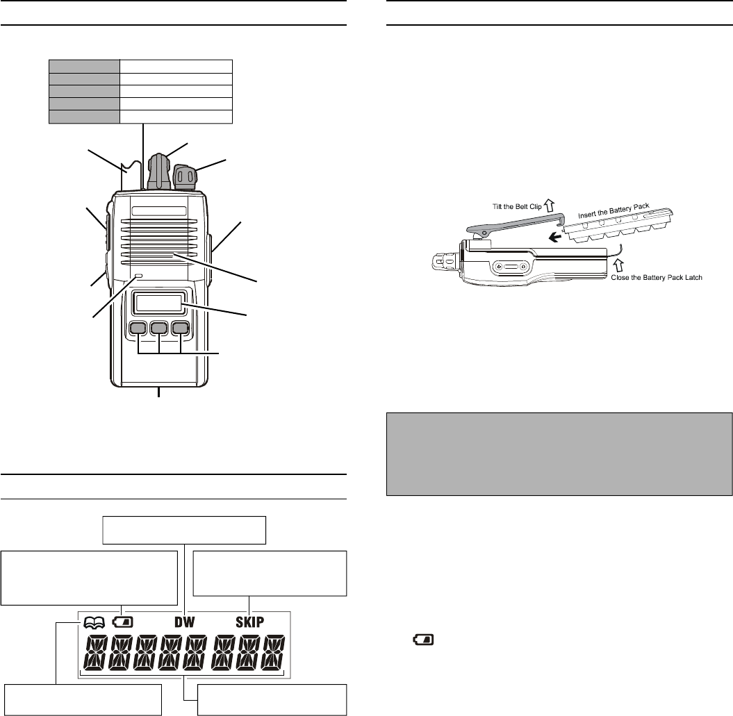 rTo install the battery, hold the transceiver with your